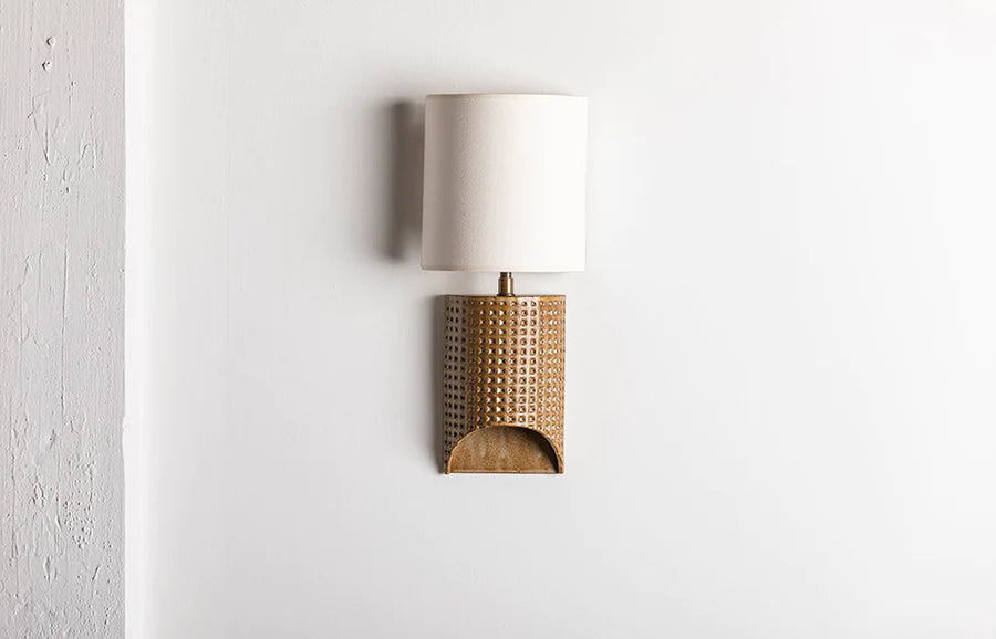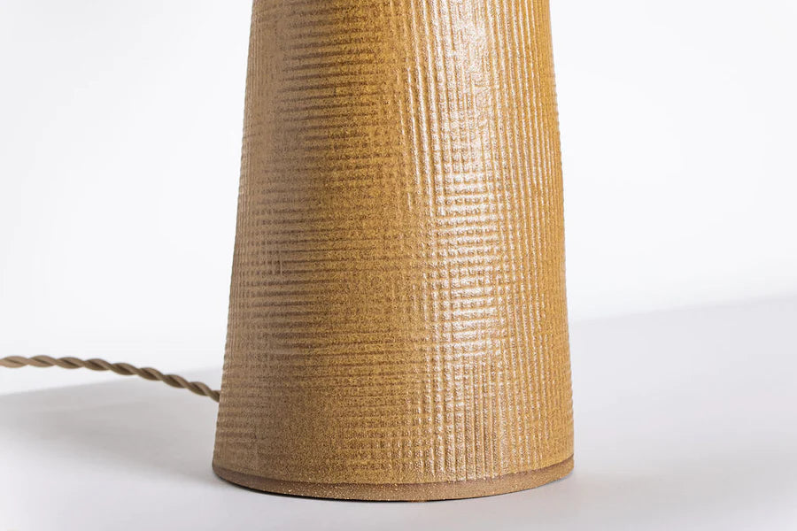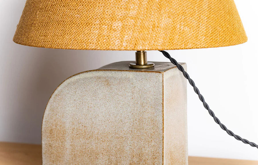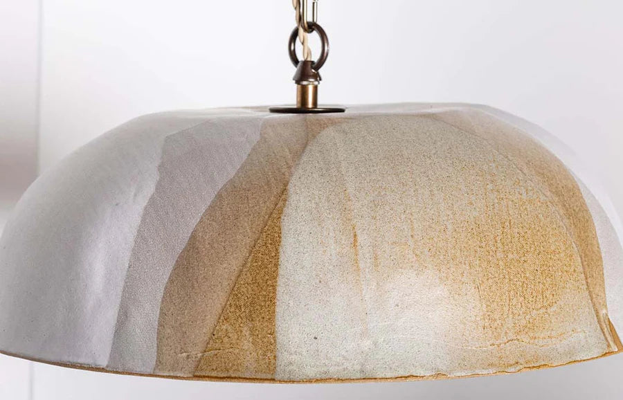This glaze works well as a base for more neutral shades such as Chalk and Parchment, which can be seen on the poured Hirsch pendant and dipped Gowanus lamp. In both instances, Ochre gives these glazes a bit of warmth.