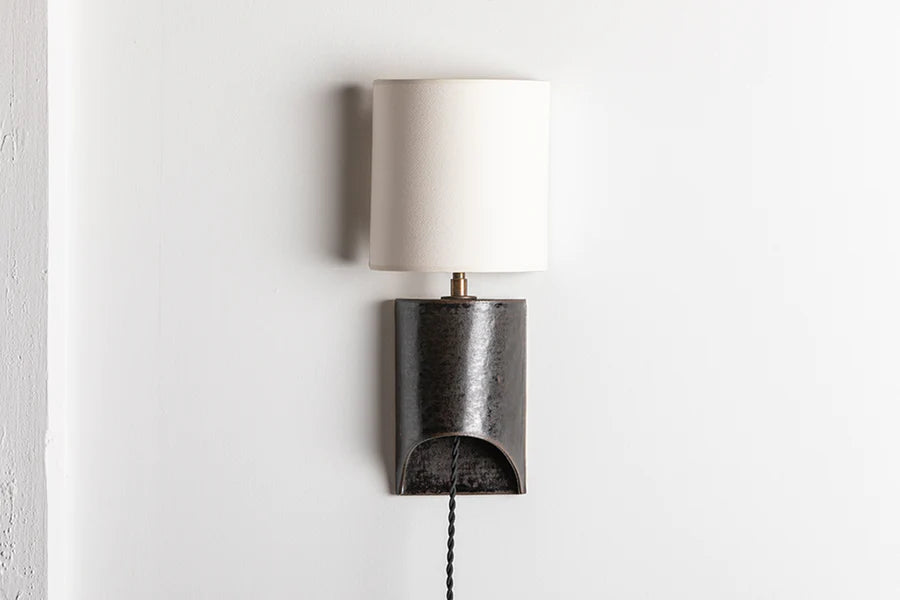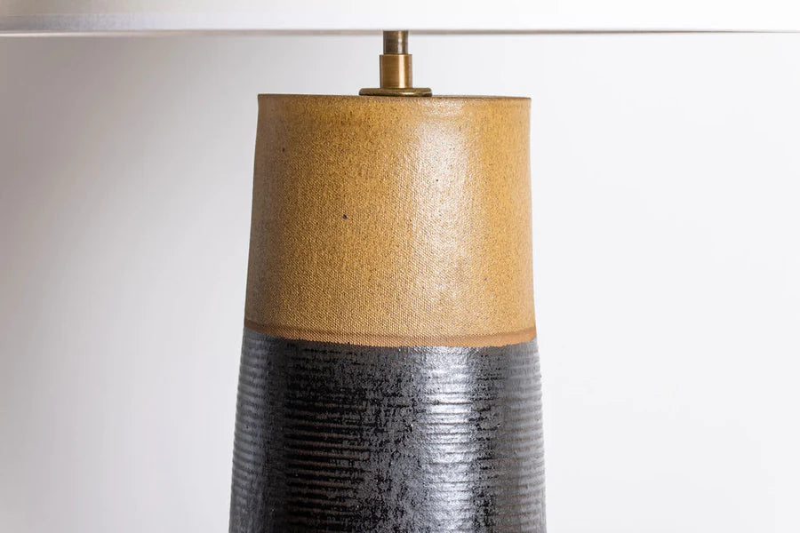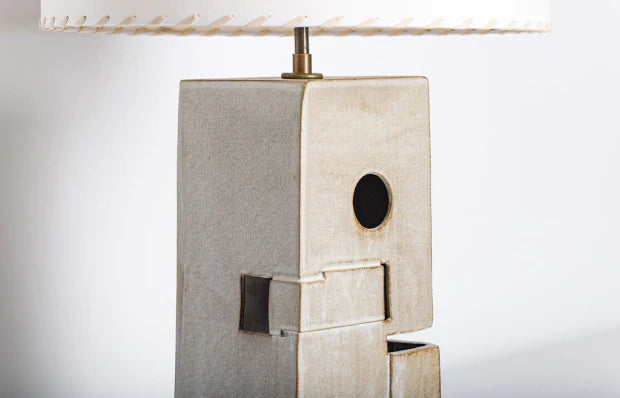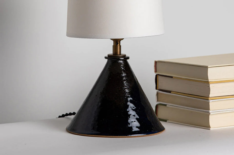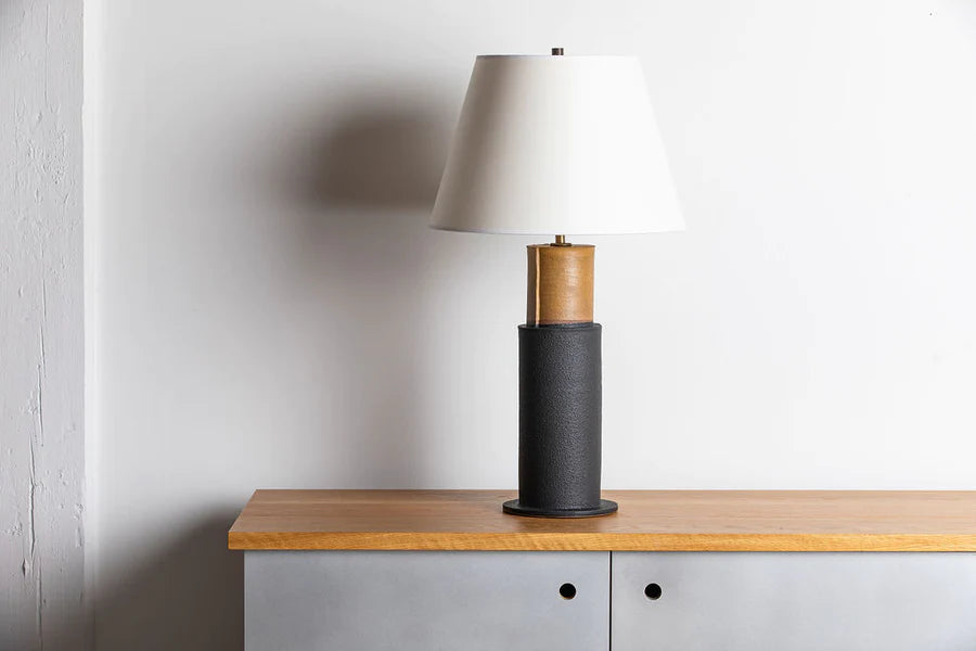 Like Chalk, this glaze lends itself to a variety of combinations. Hide’s matte warmth pairs perfectly with darker finishes (see our Madeline lamp and Turnier lamp above).