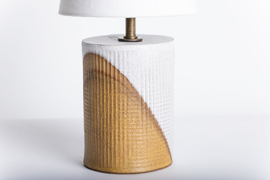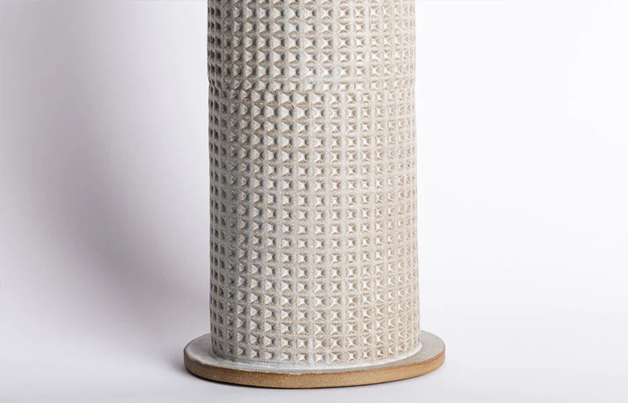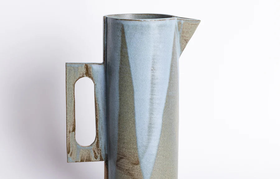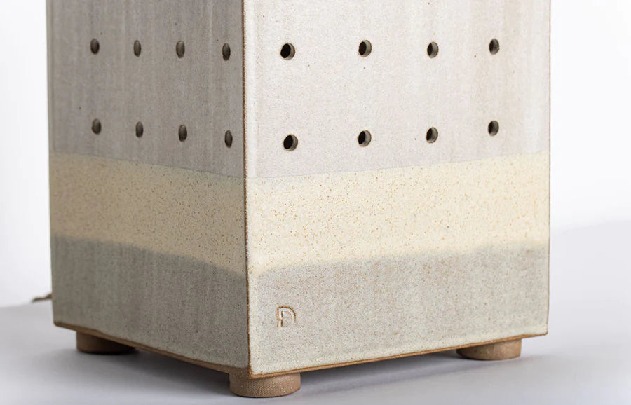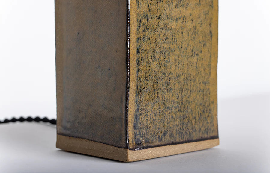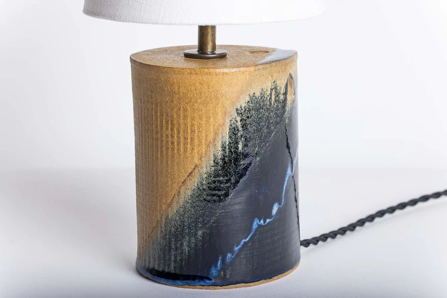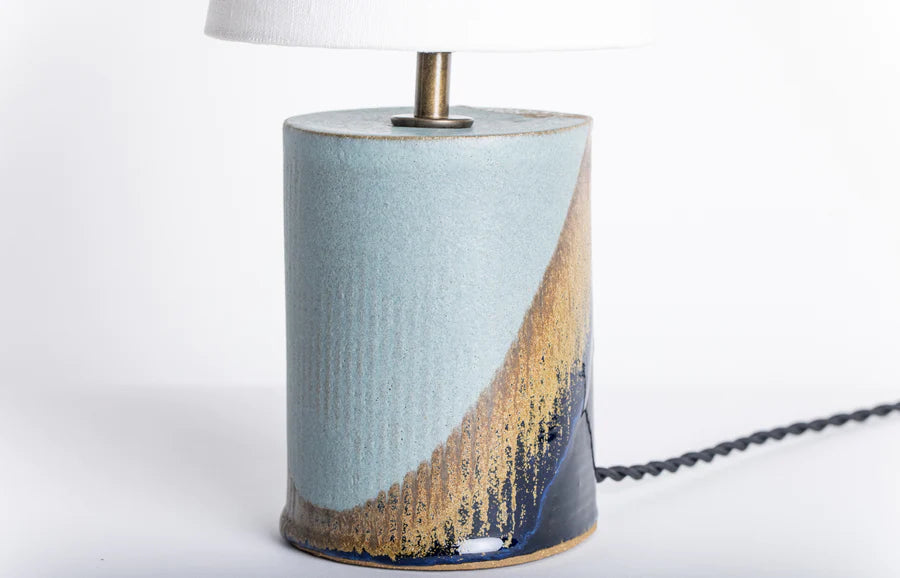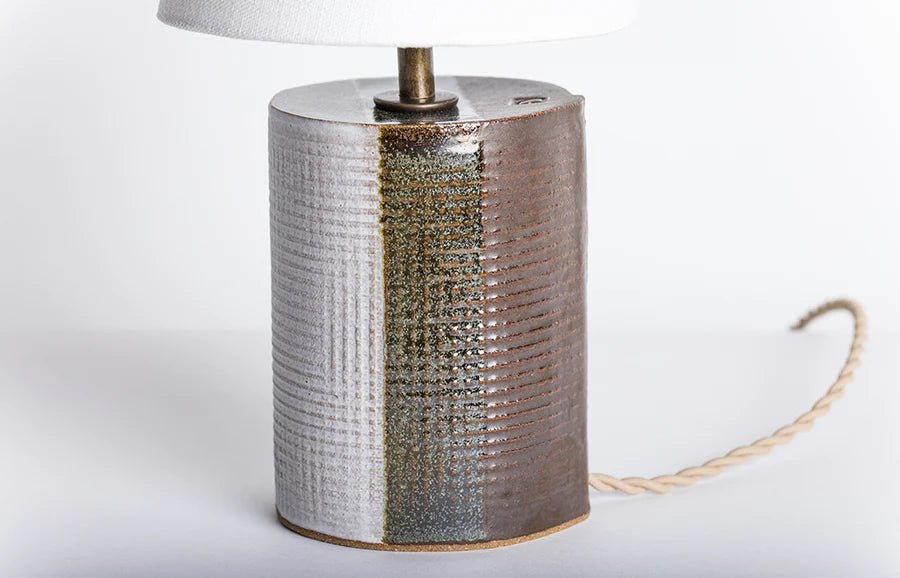 Sea is a new glaze for us. Incredibly matte, this glaze behaves like the sea, hence the name. In thicker applications, like on the Can lamp, it fires as a light blue, much like the water reflecting the sky’s azure. While in thinner applications, Sea possesses a green-ish brown tint, as seen on the Handle pitcher.