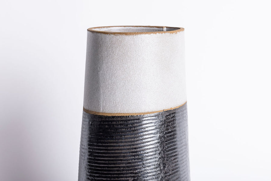 The versatility of this glaze lends itself to a variety of combinations. We often use it as a clean contrast to our darker and more satin glazes, as seen on the Turnier vase.