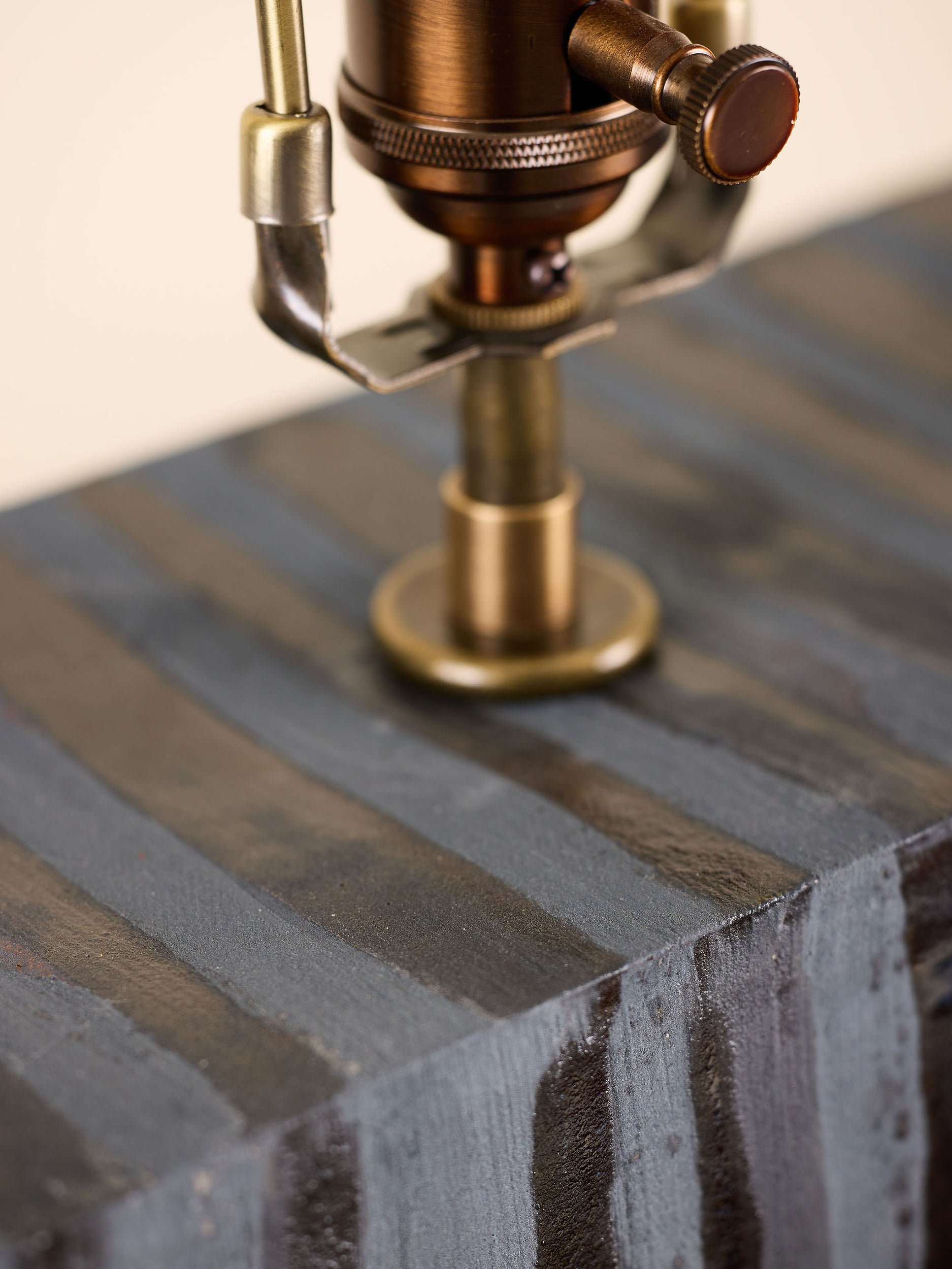 Our stoneware Banda Table Lamp is handcrafted using slab-construction techniques.