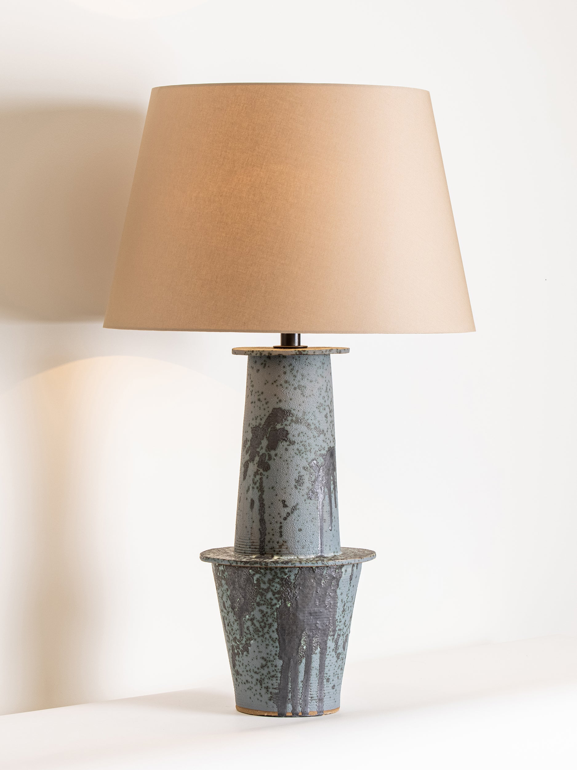 Our stoneware Blunk Table Lamp is handcrafted using slab-construction techniques. The lamp’s pattern is created by rolling the surface with textured rolling pins and rods.