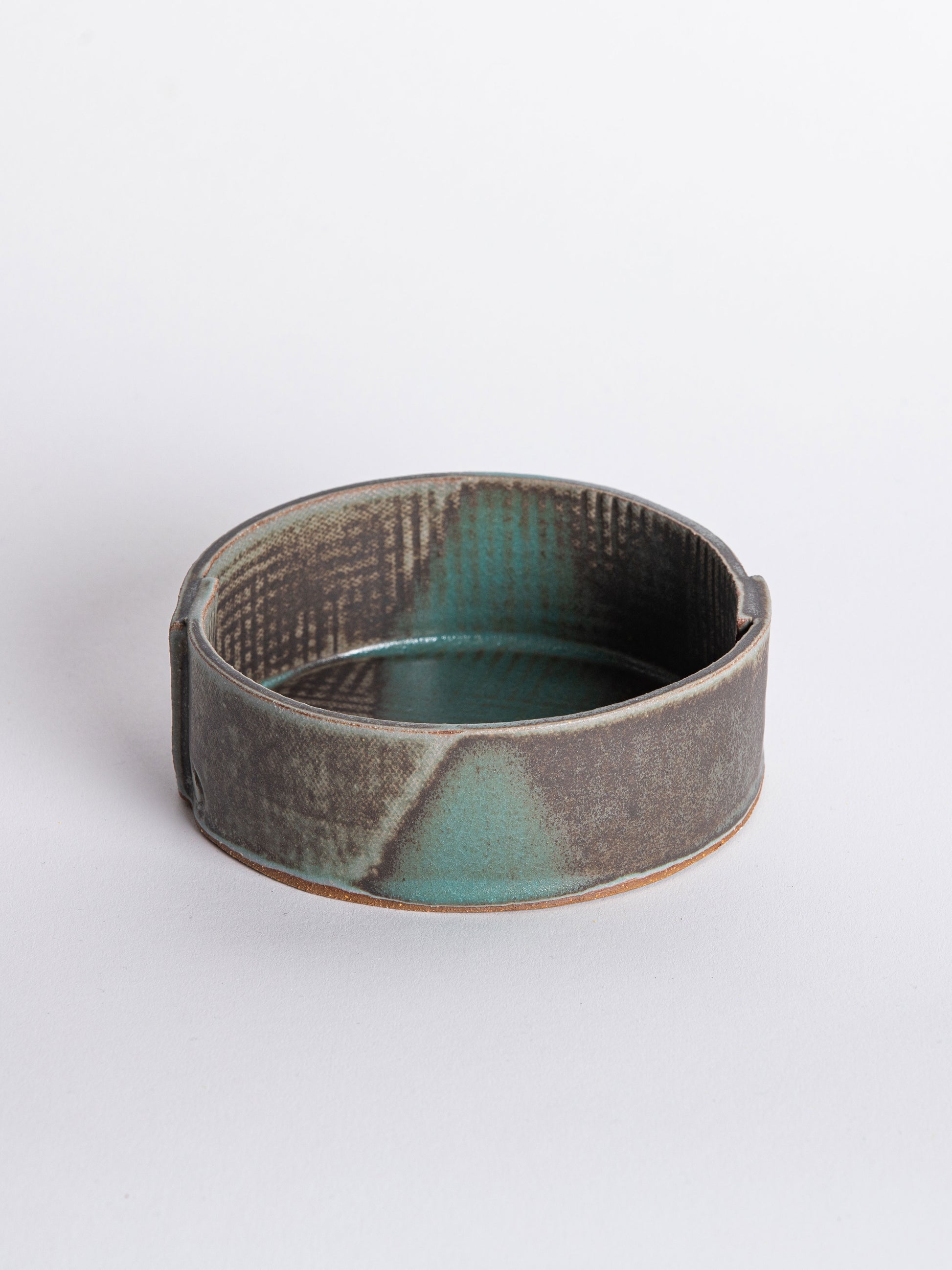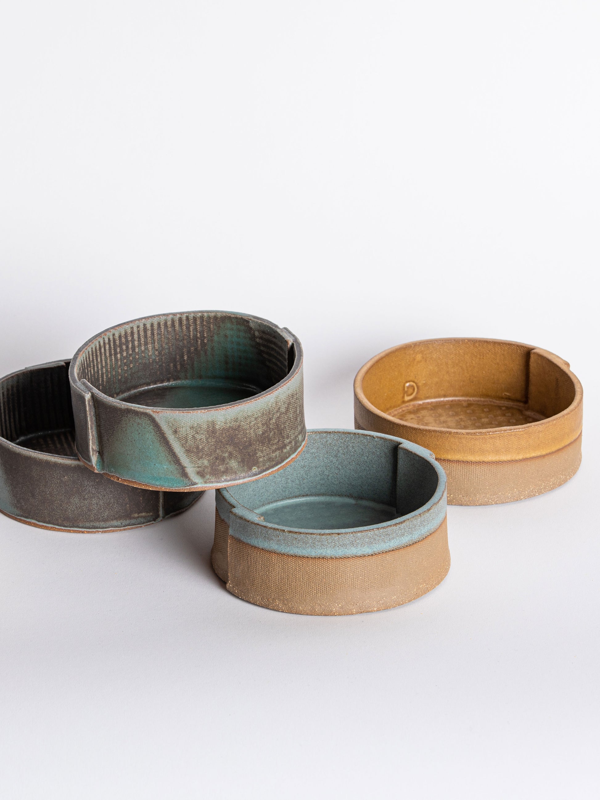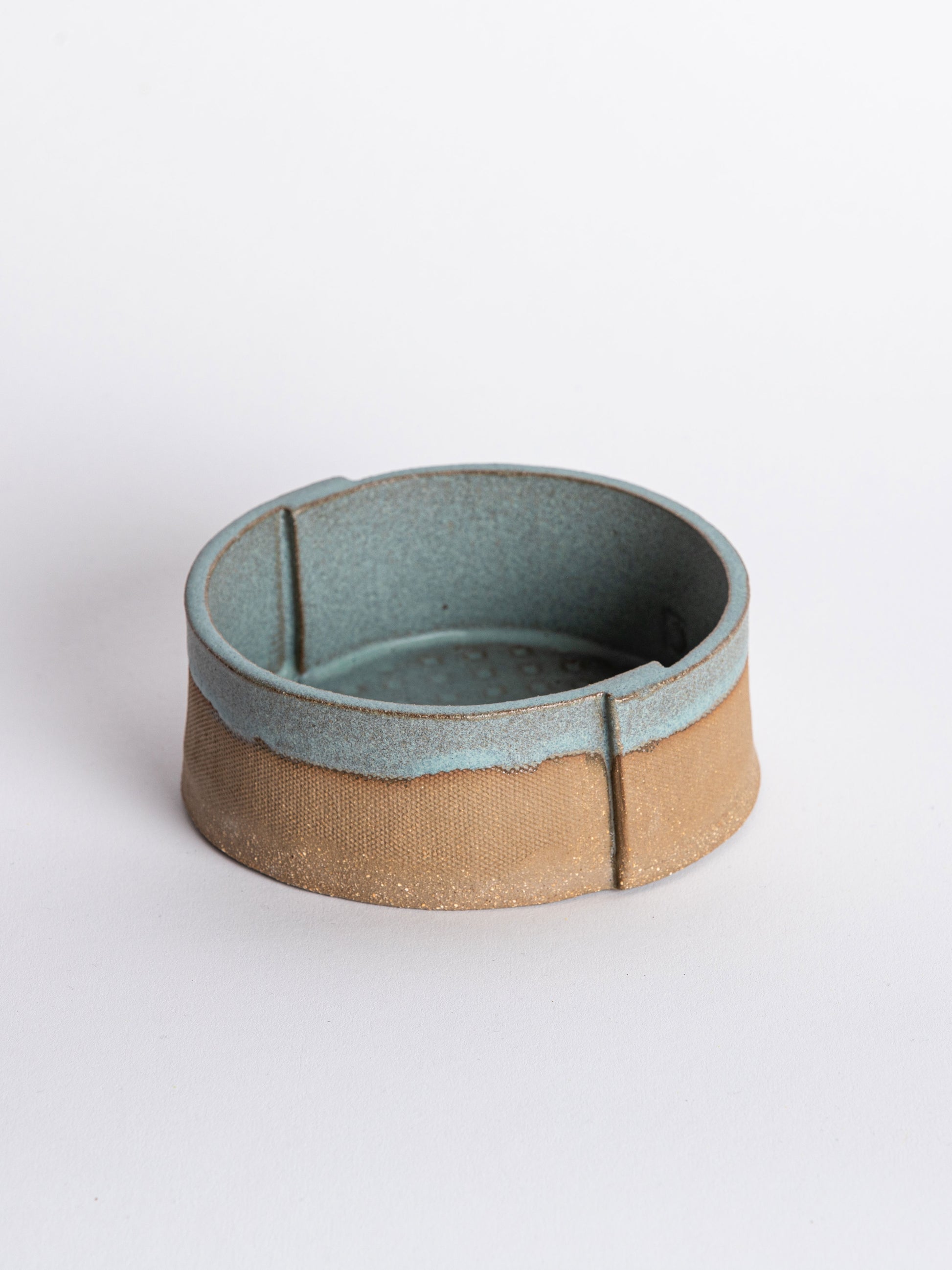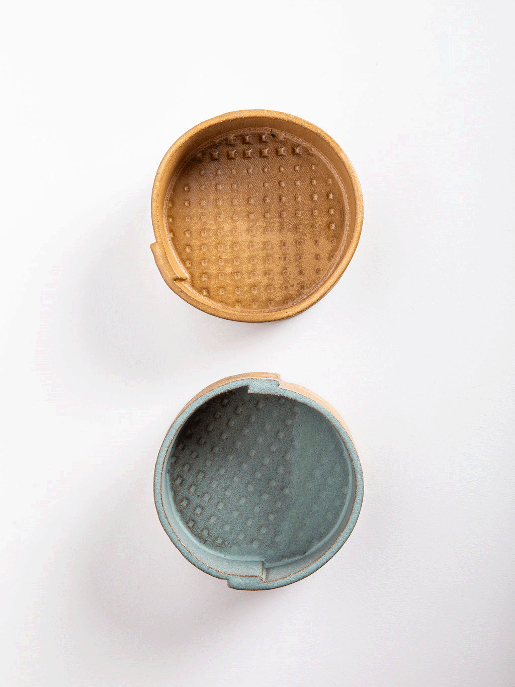 Our stoneware Bottle Coaster is handcrafted using slab-construction techniques. The coaster’s pattern is created by rolling the surface with textured rolling pins and rods.