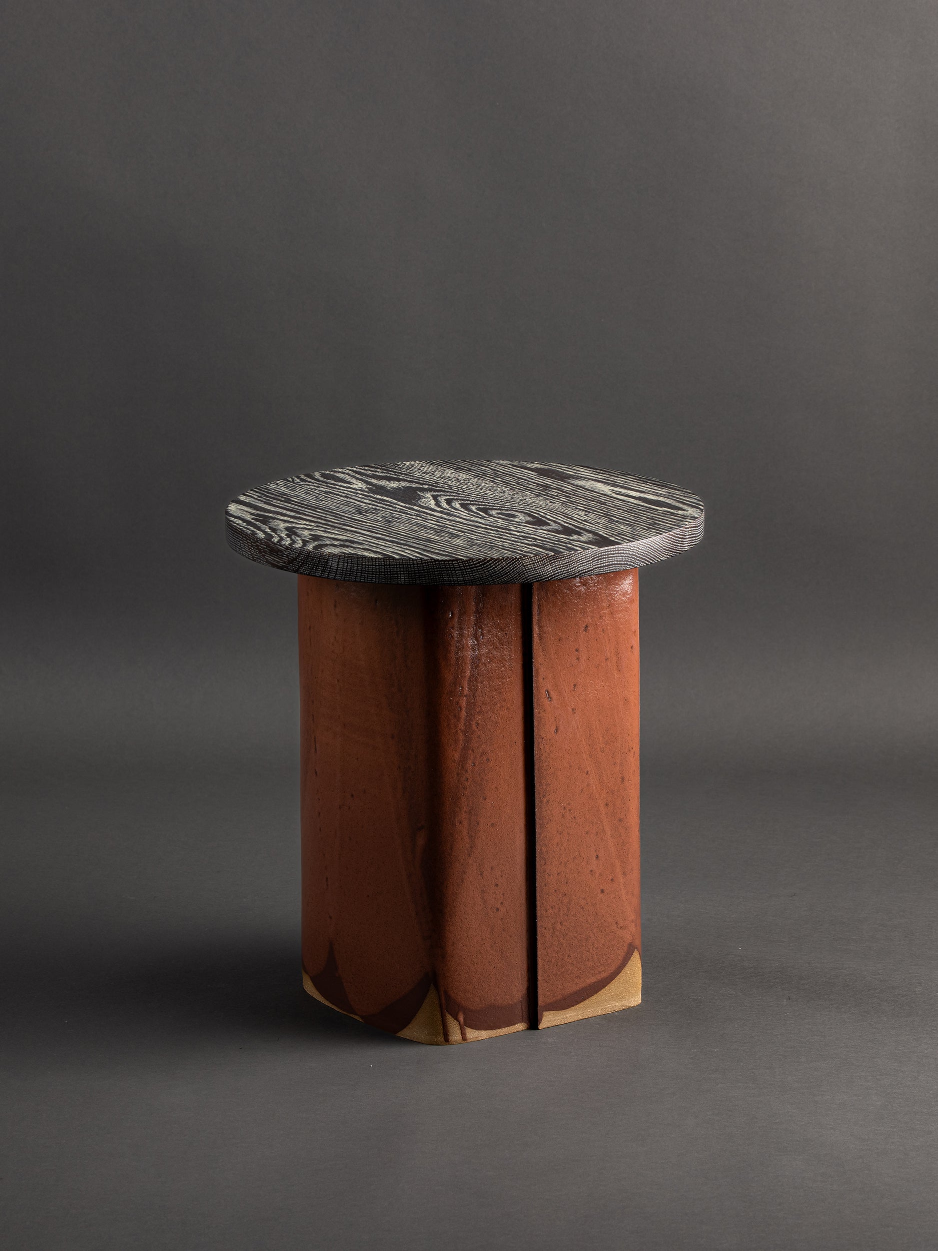 Our stoneware and oak Channel Side Table is handcrafted using slab-construction and cerusing techniques.
