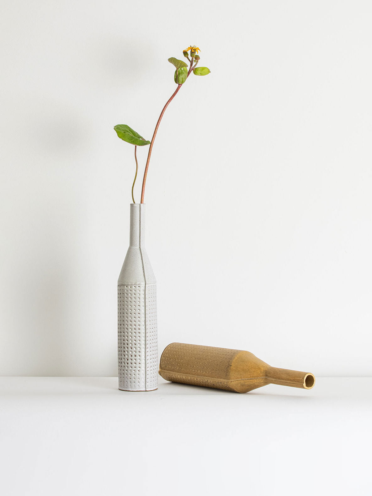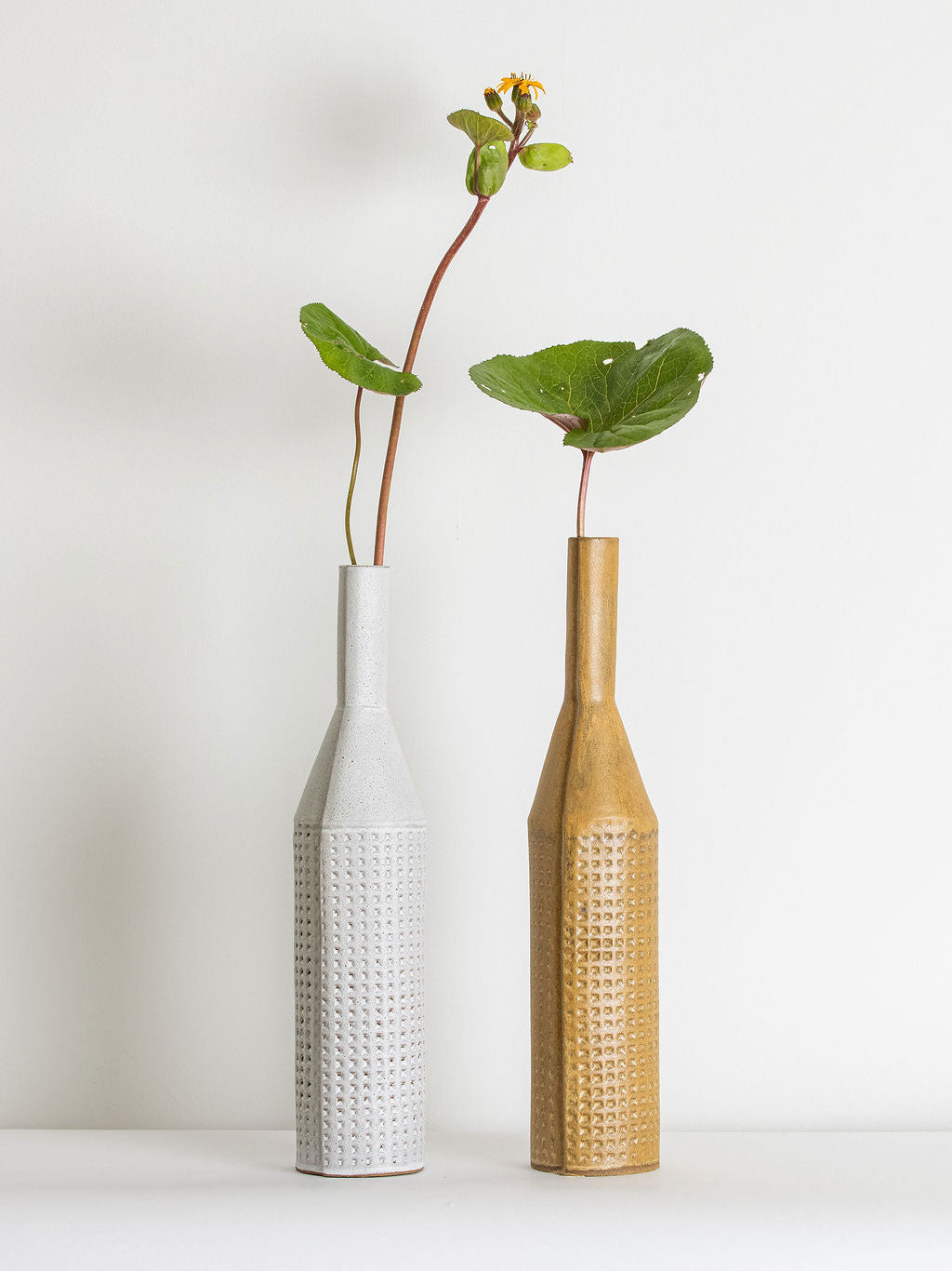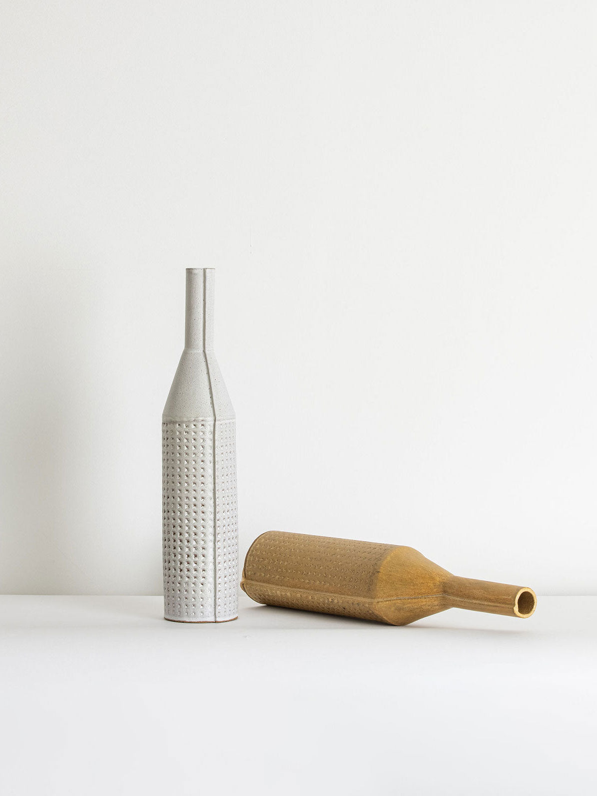 Our stoneware Charles Bottle is handcrafted using slab-construction techniques.