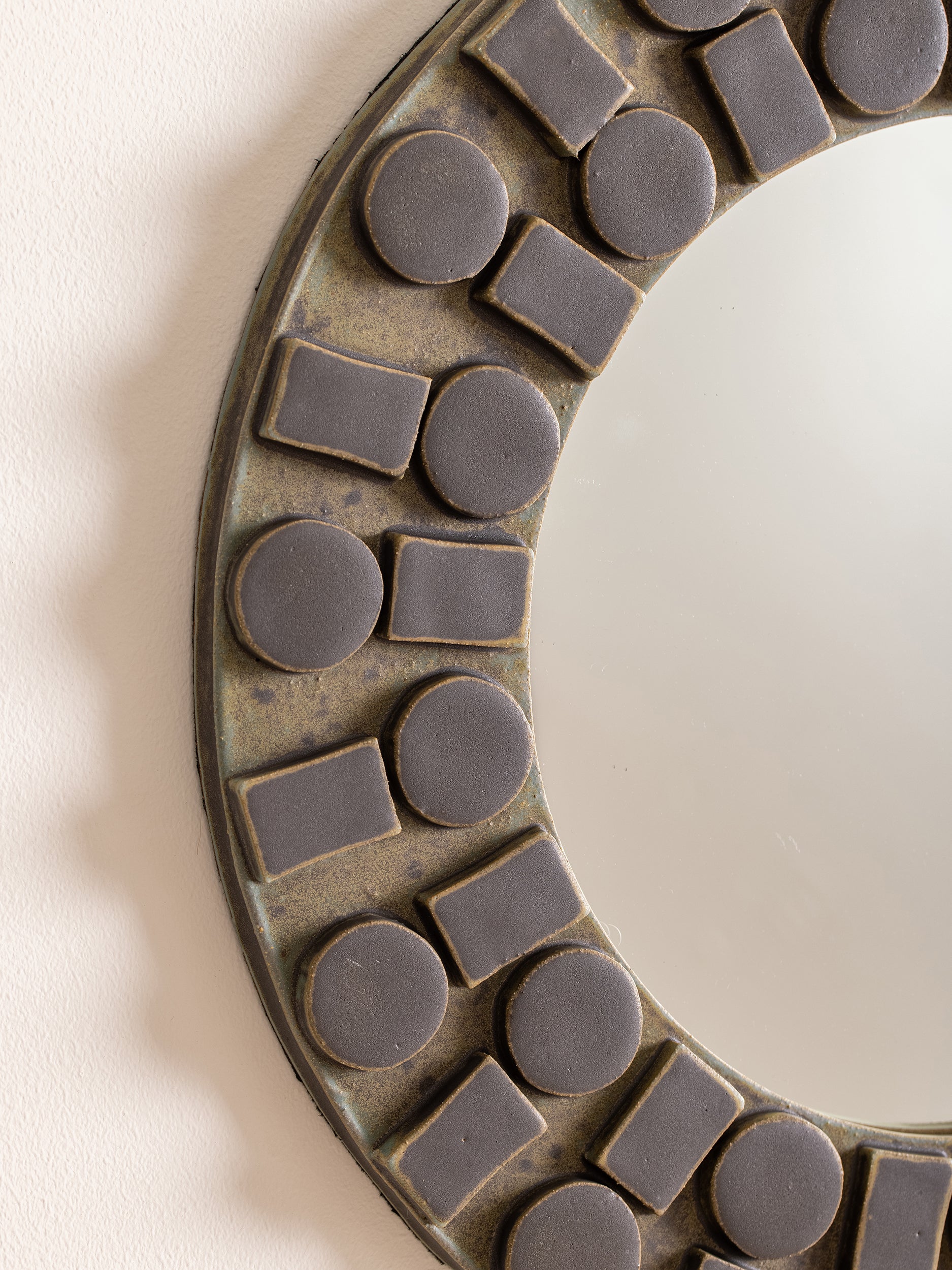 Our stoneware Cirque Wall Mirror is handcrafted using slab-construction techniques.
