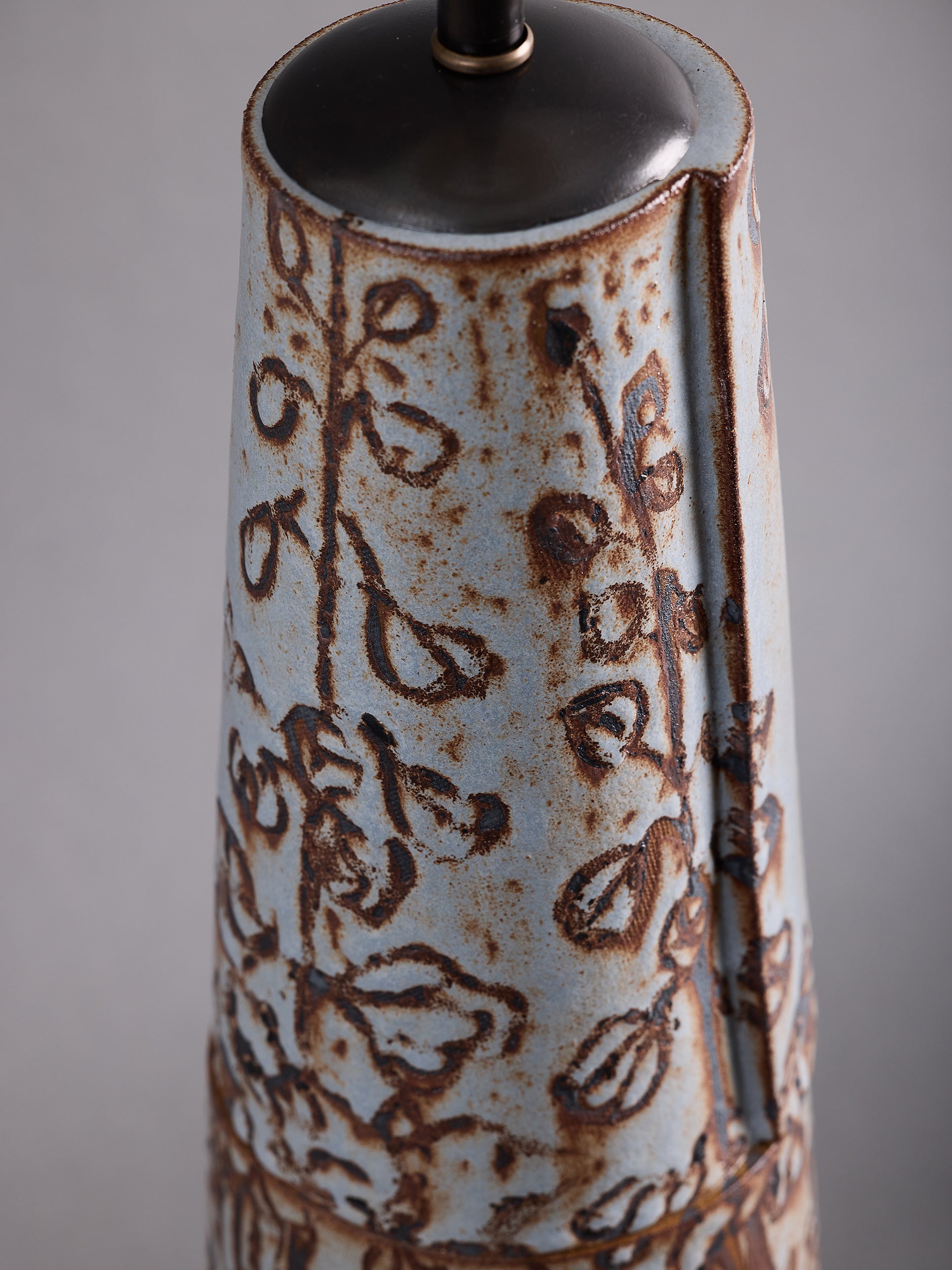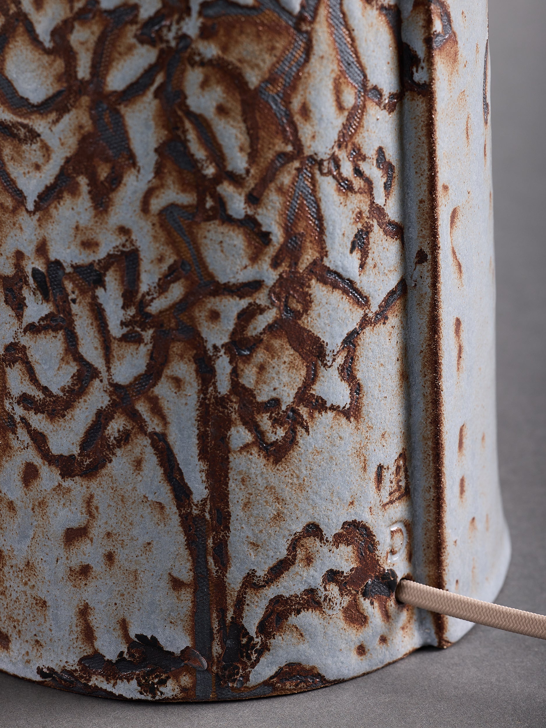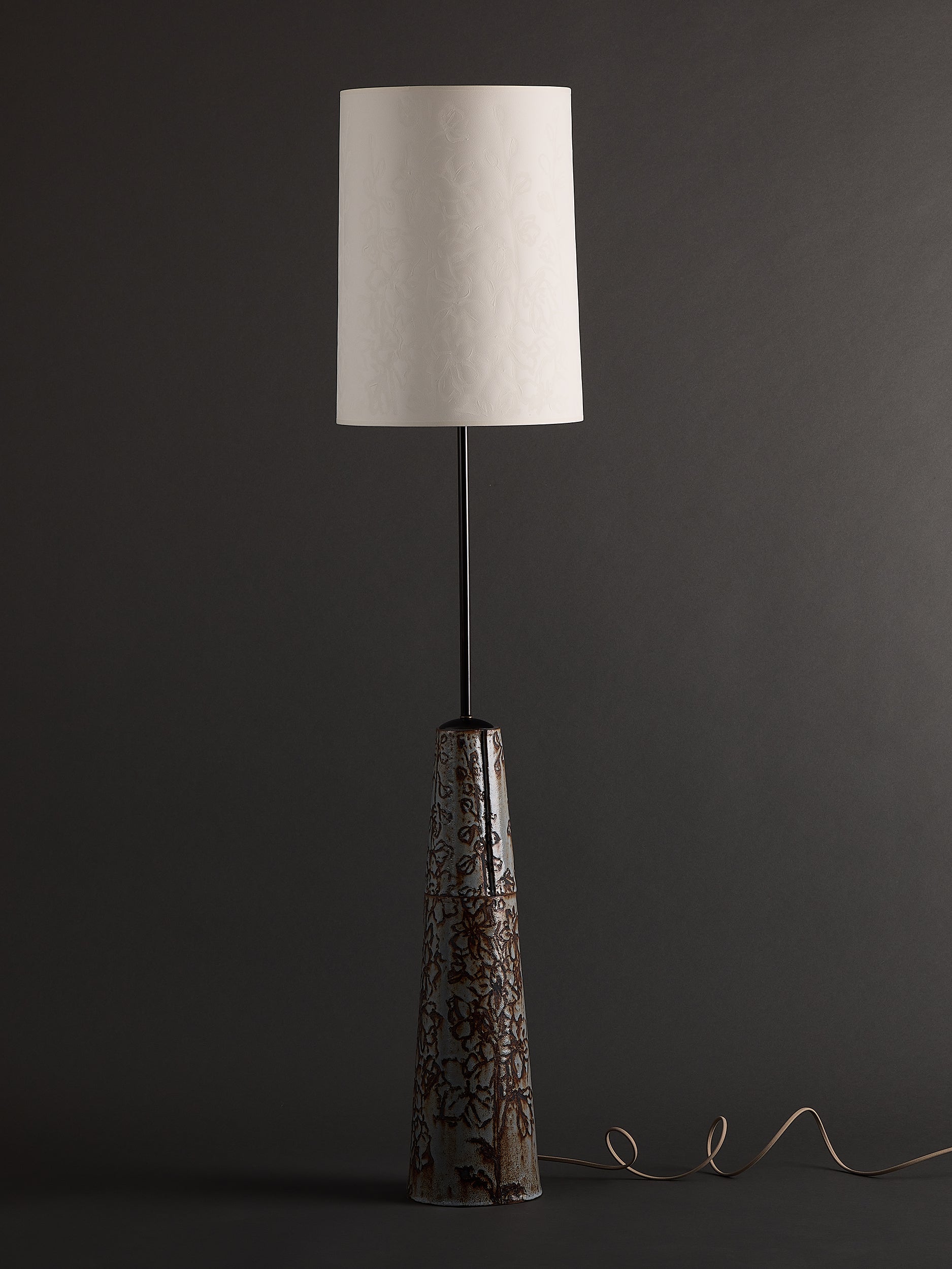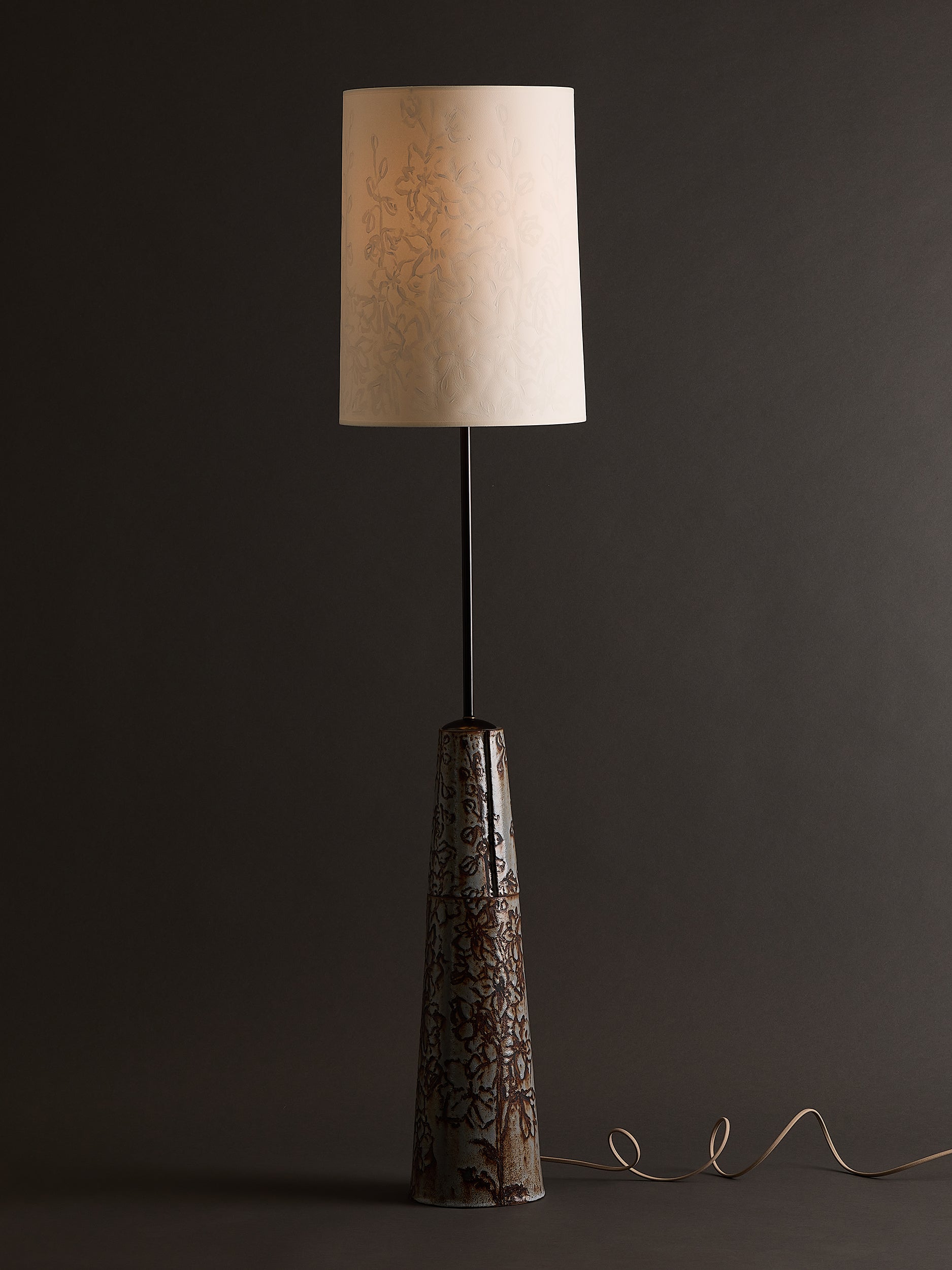 Our stoneware Delphinium Lamp is handcrafted using slab-construction techniques.
