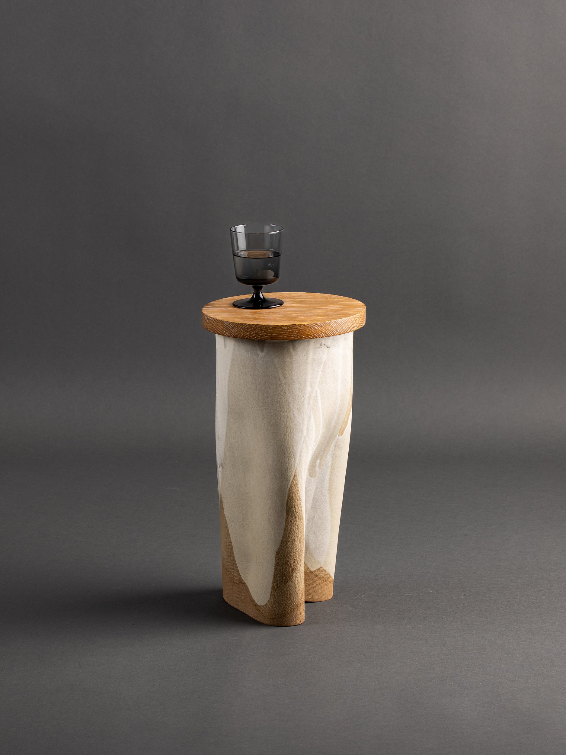 Our stoneware and oak Drift Cocktail Table is handcrafted using slab-construction and cerusing techniques.