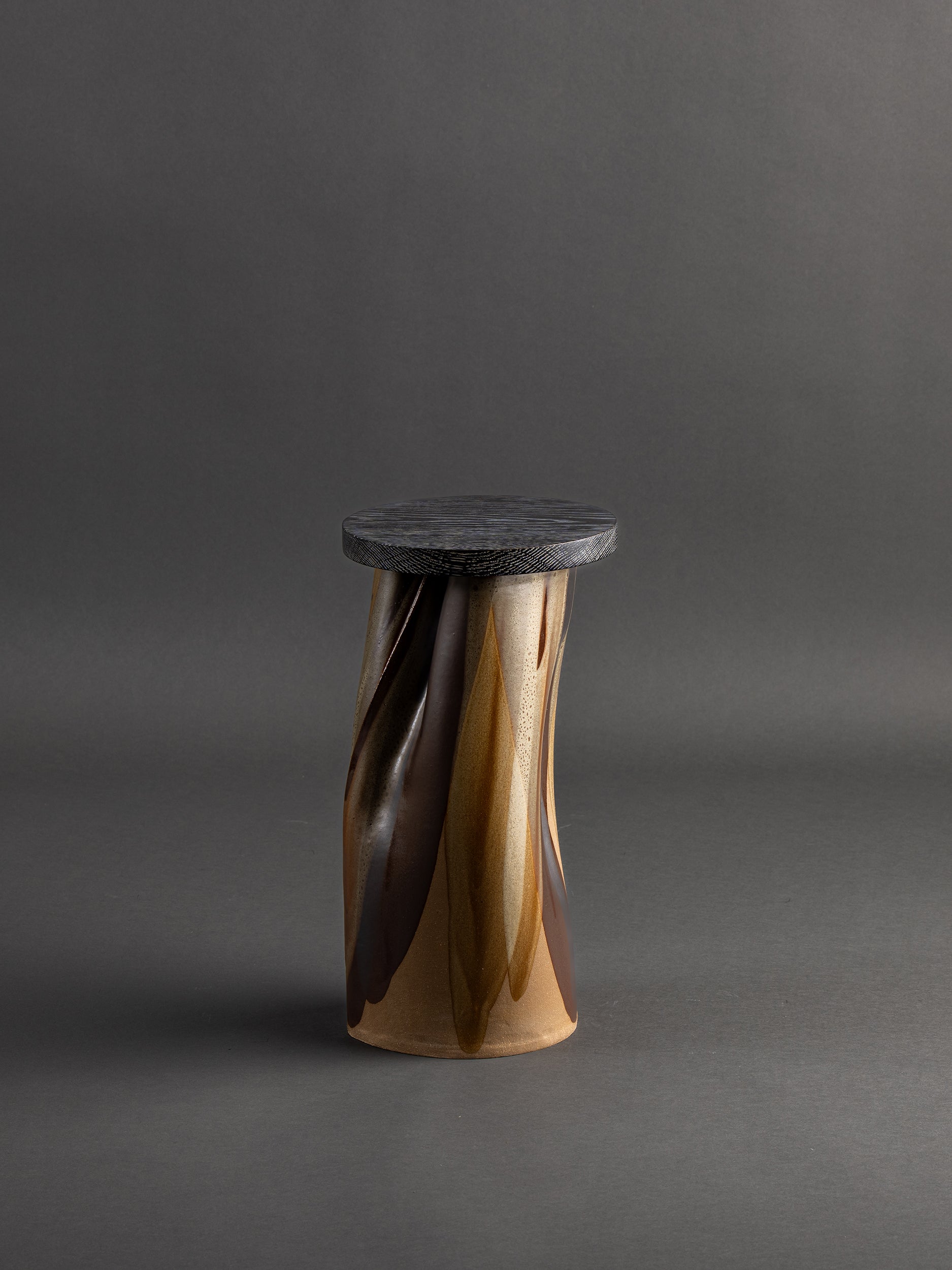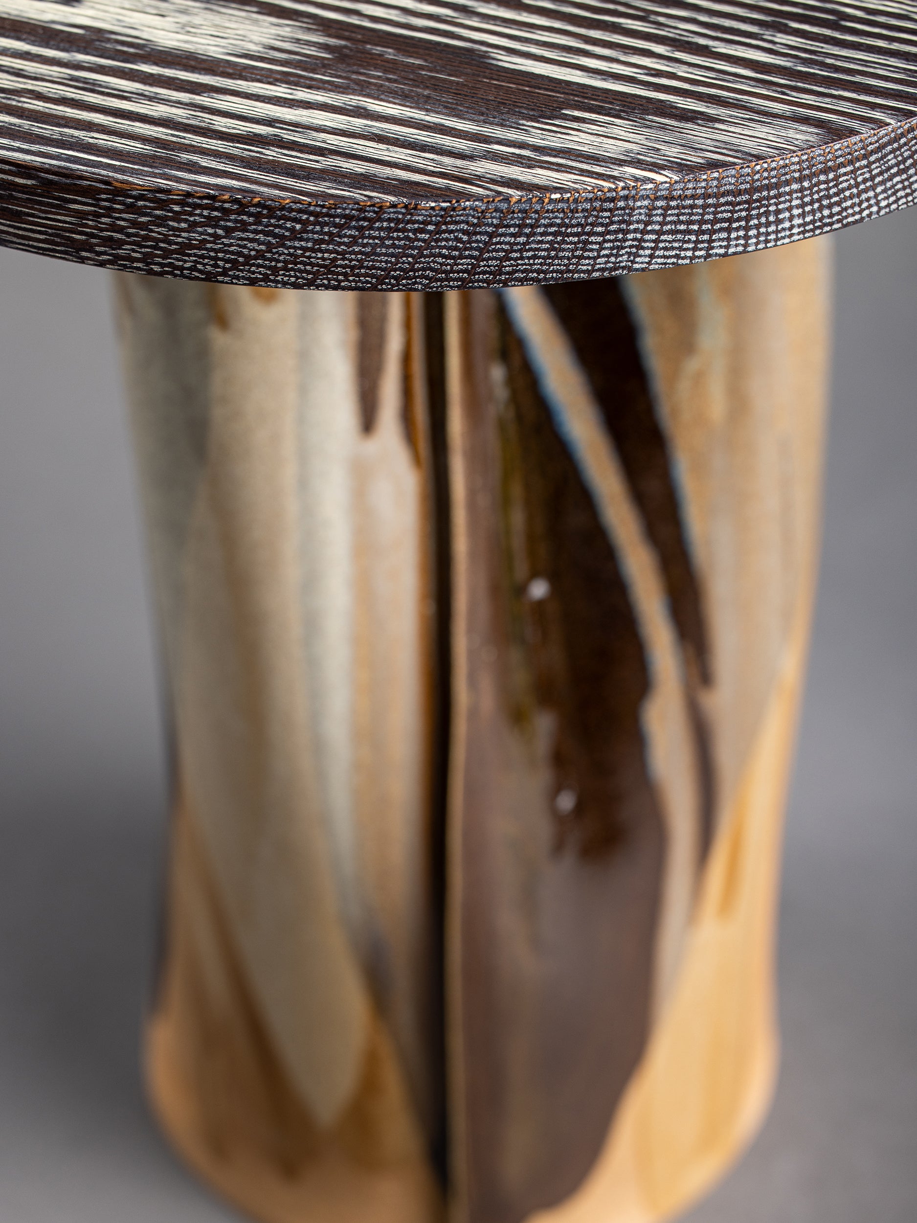 Our stoneware and oak Drift Cocktail Table is handcrafted using slab-construction and cerusing techniques.