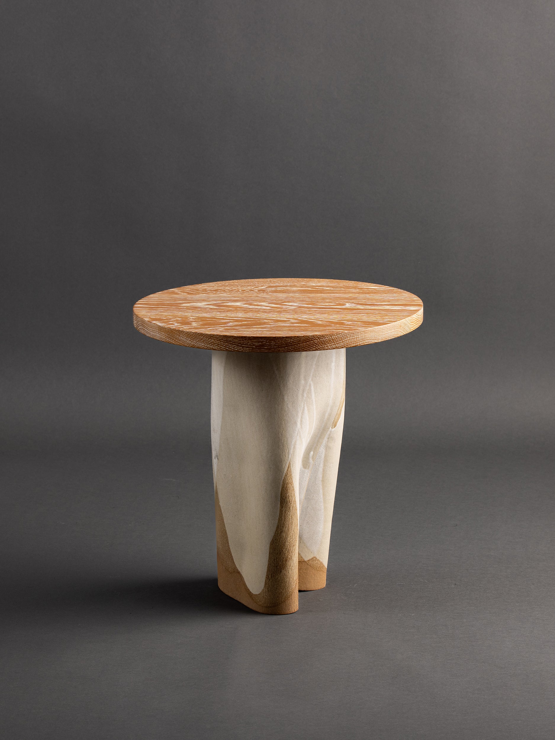 Our stoneware and oak Drift Side Table is handcrafted using slab-construction and cerusing techniques.