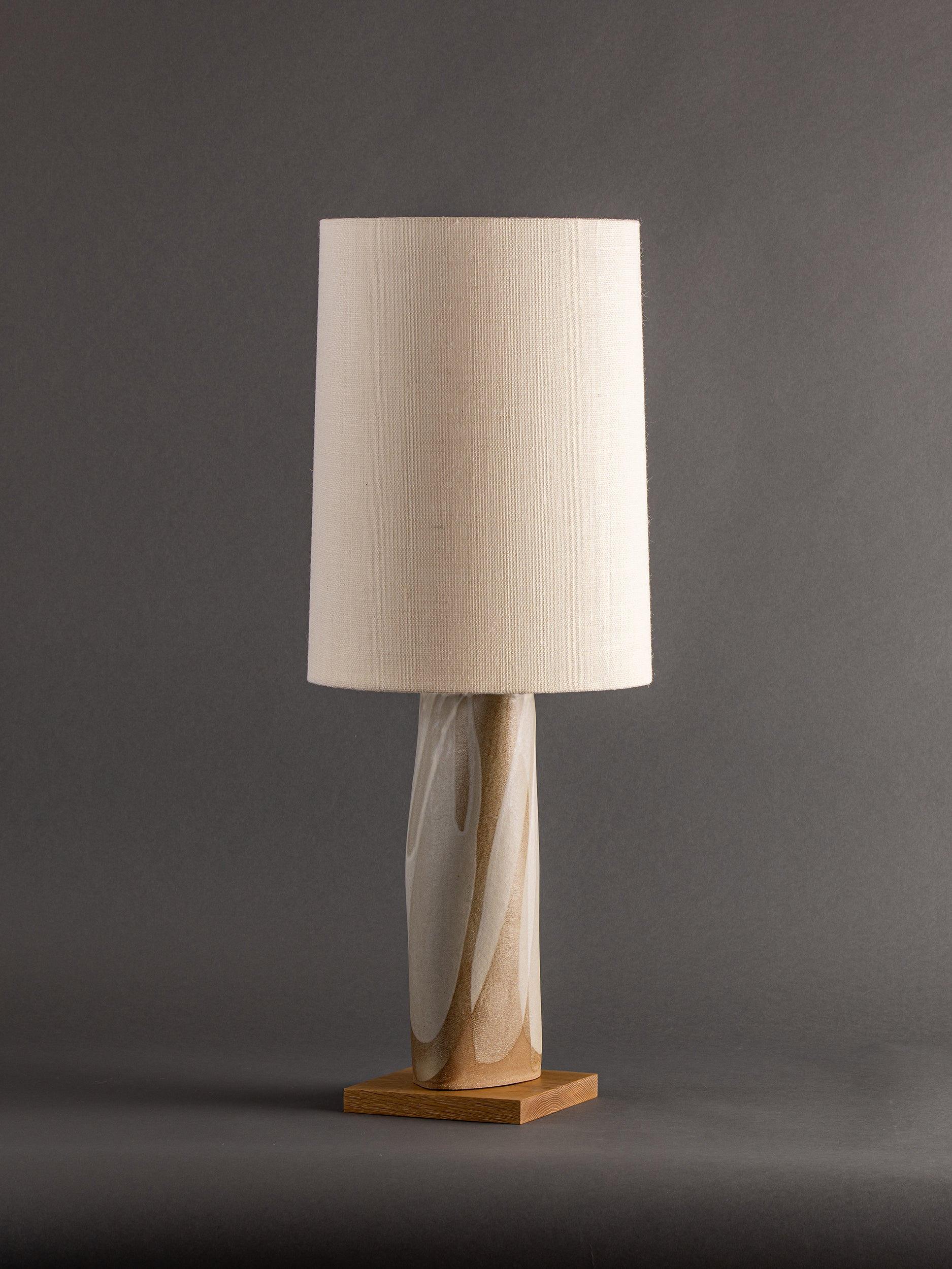 Our stoneware and oak Drift Table Lamp is handcrafted using slab-construction and cerusing techniques.