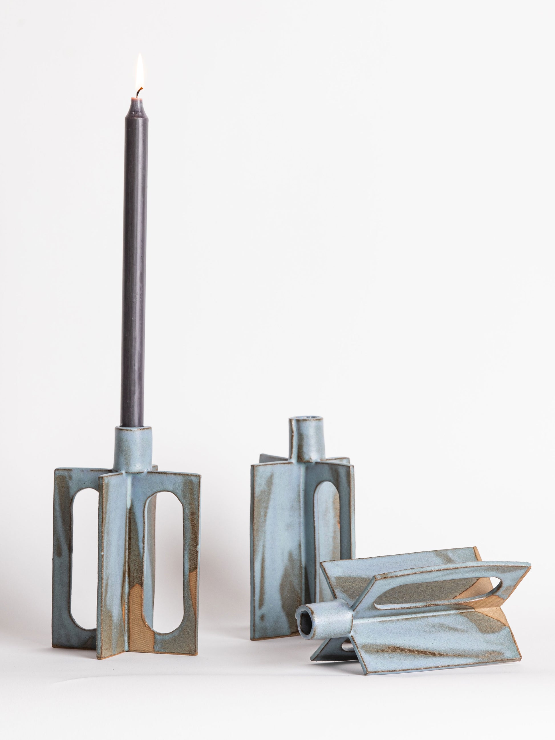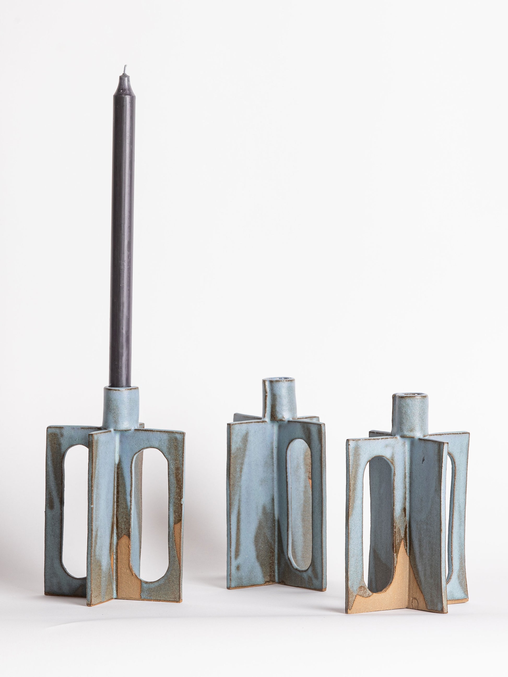 Pictured here in sea poured glaze. Candle holders accommodate a tapered candle with a 3/4” diameter base.