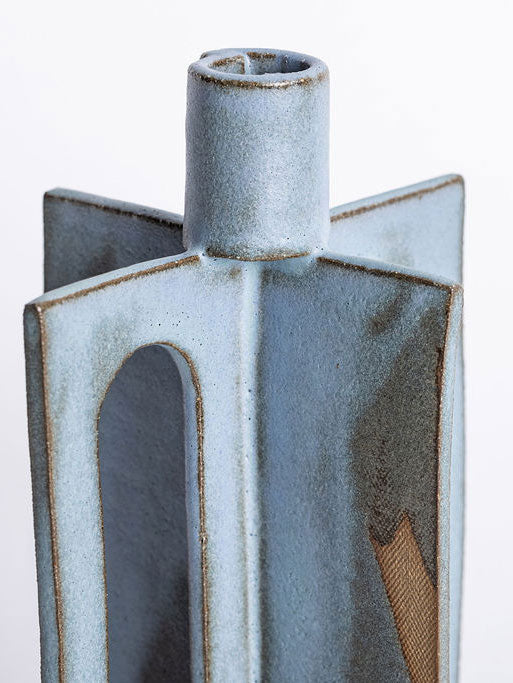 Our stoneware Handle Candle Holder is handcrafted using slab-construction techniques.