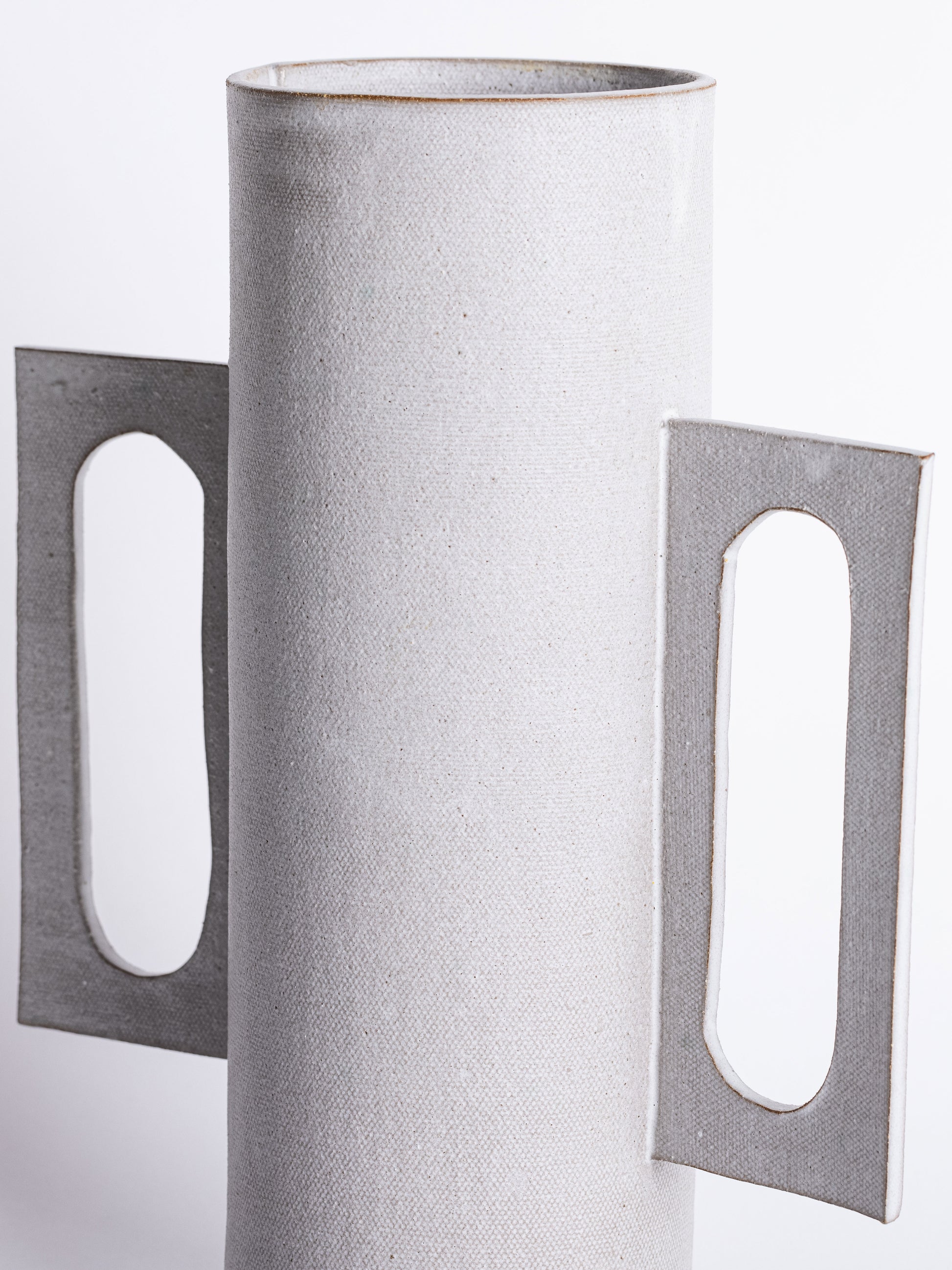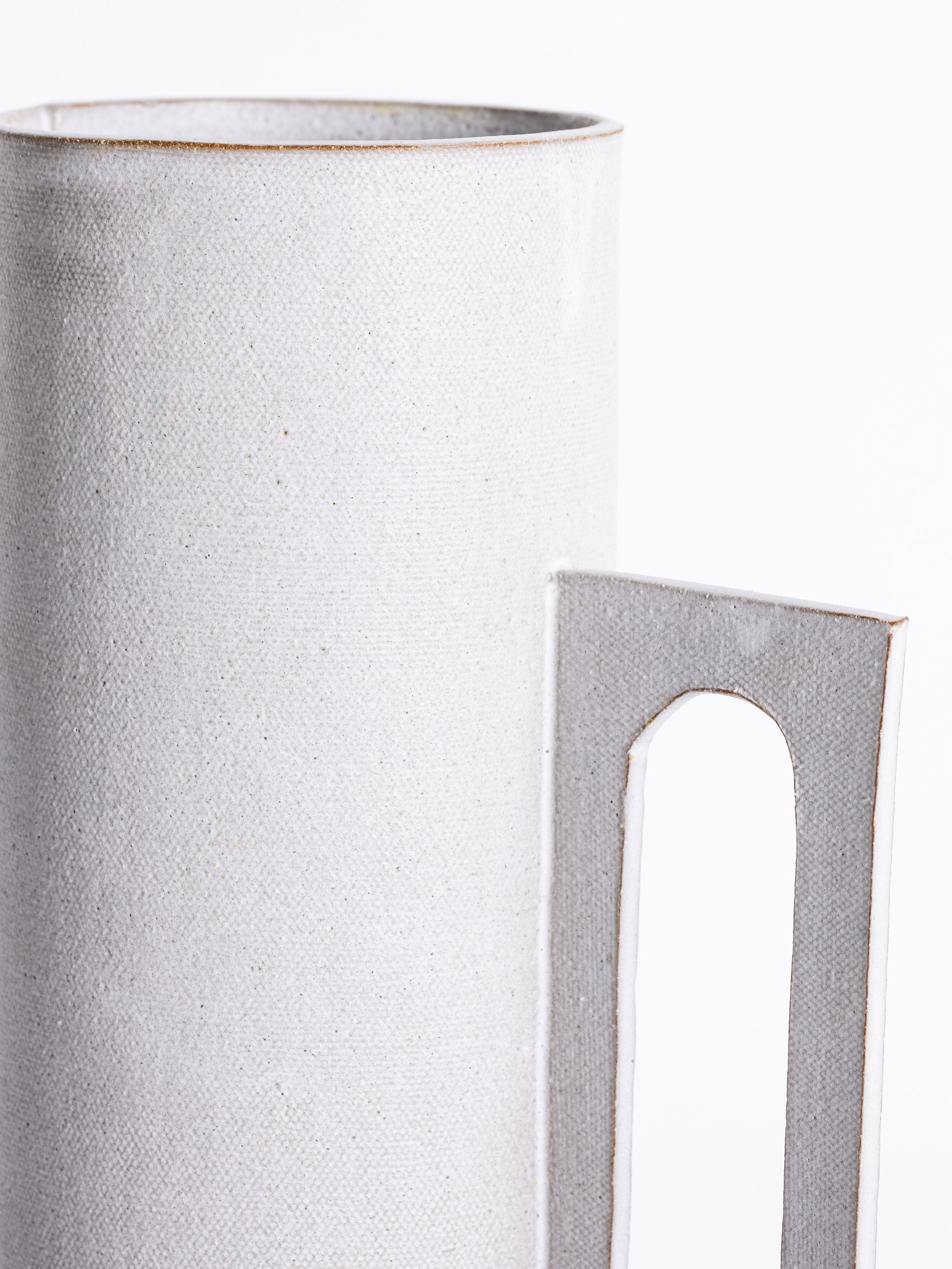 Our stoneware Handle Vase is handcrafted using slab-construction techniques.