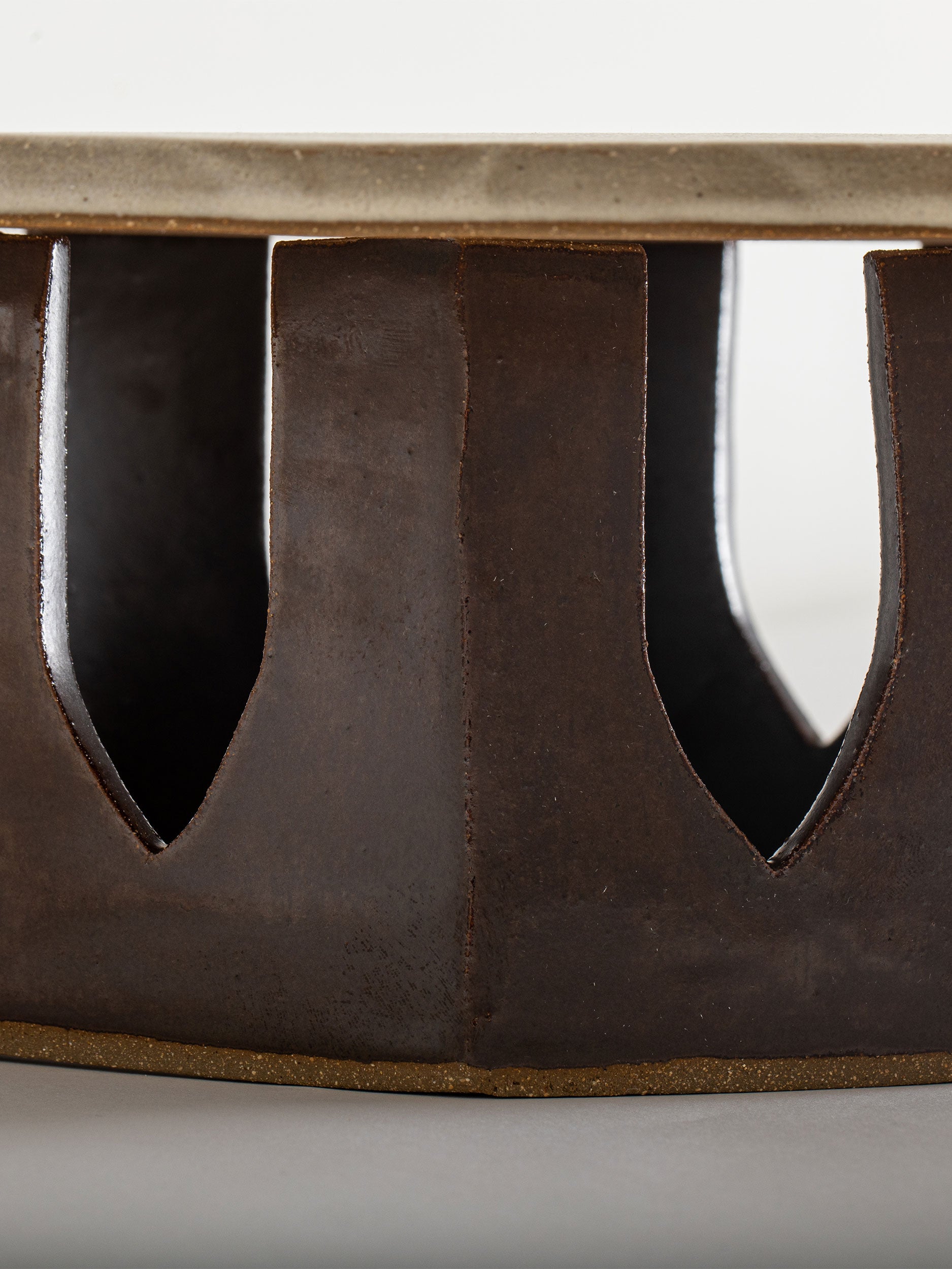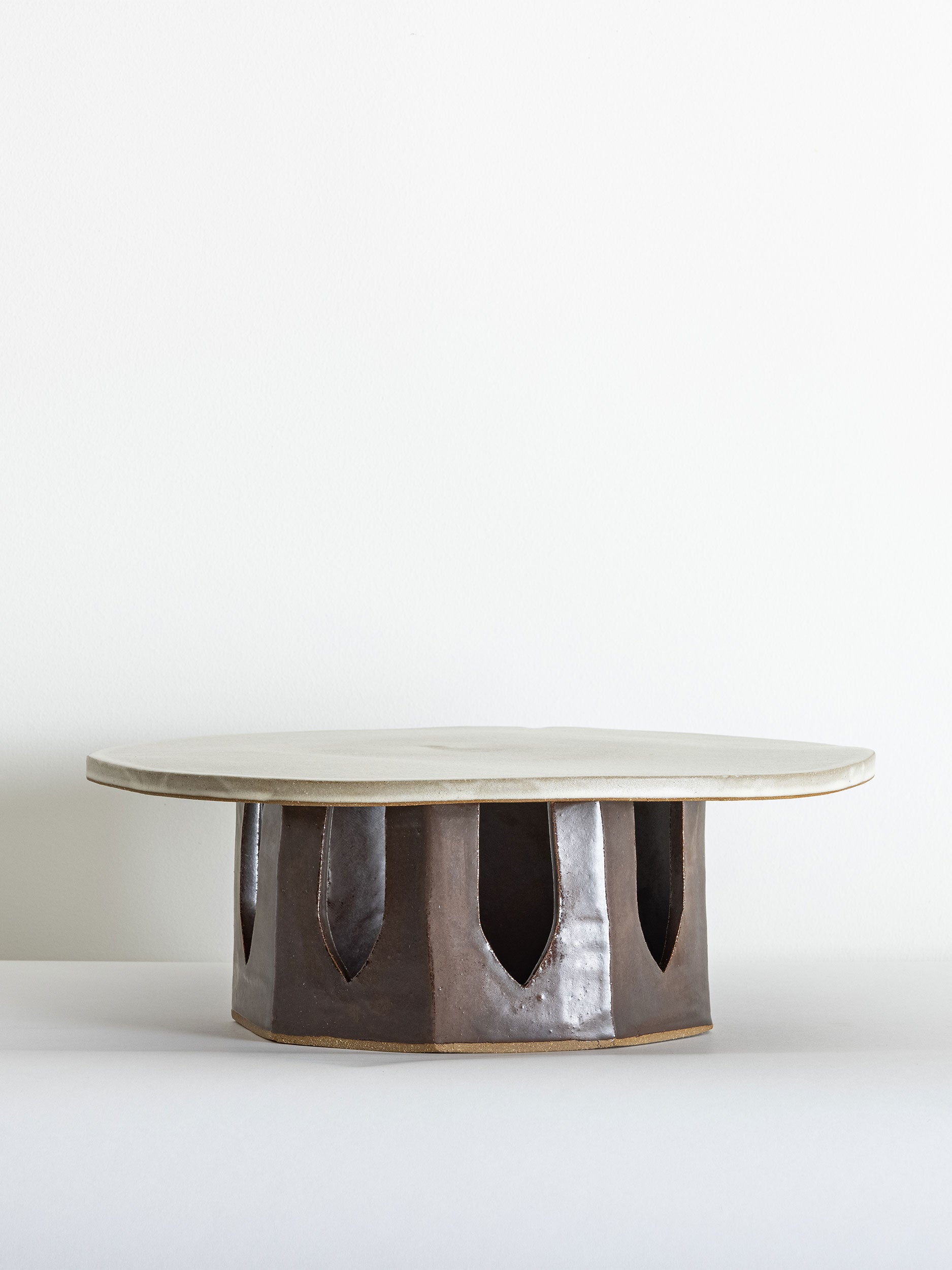 Our stoneware Harvey Cake Stand is handcrafted using slab-construction techniques.