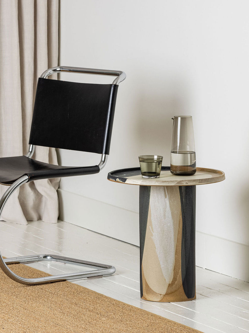 Our stoneware Hutton Side Table is handcrafted using slab-construction techniques.