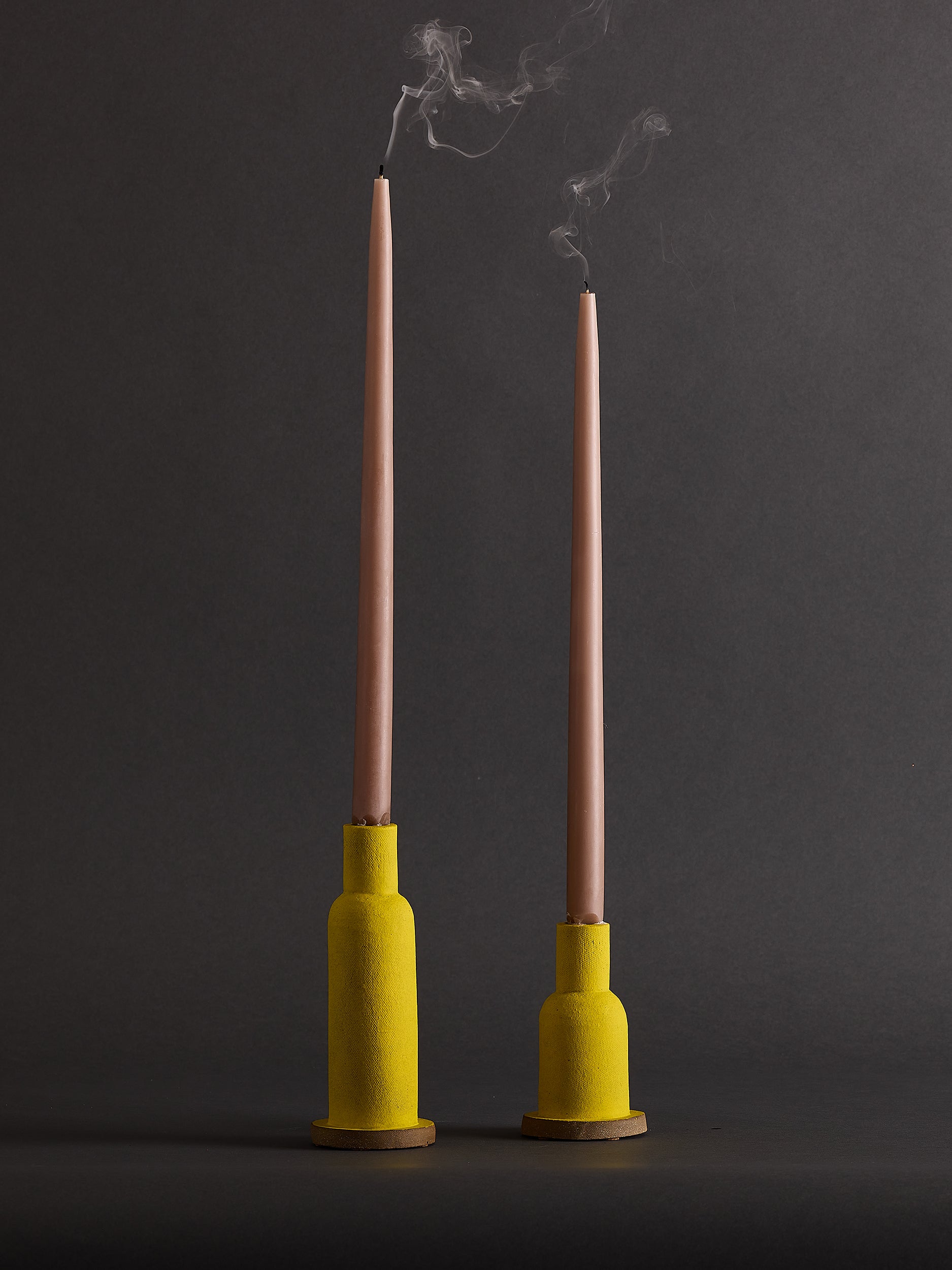 Our stoneware Lemon Candle Sticks are handcrafted using slab-construction techniques.