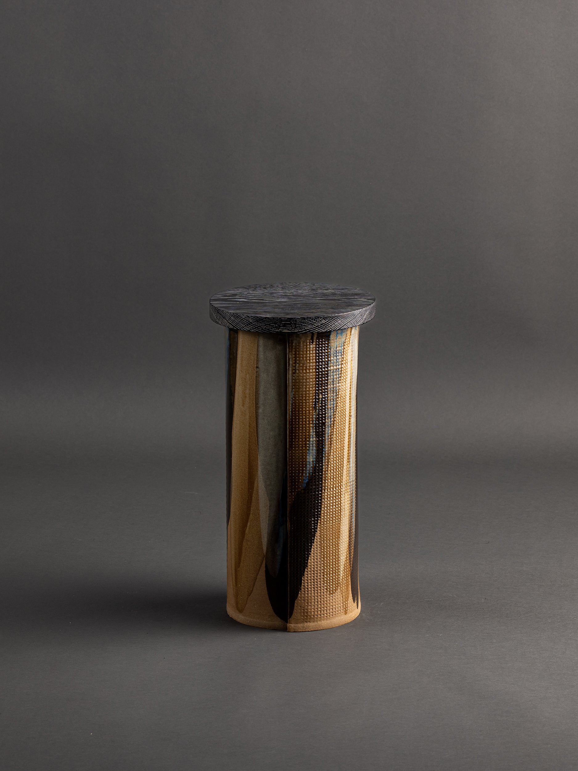 Our stoneware and oak Kent Cocktail Table is handcrafted using slab-construction and cerusing techniques.