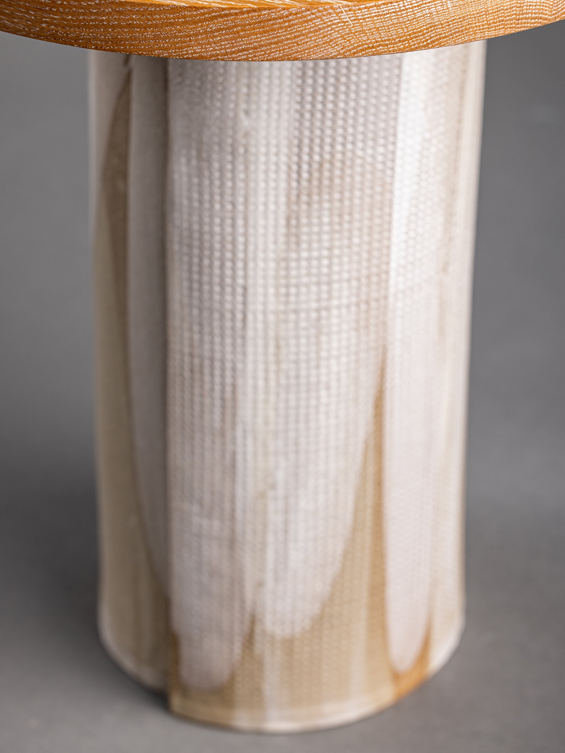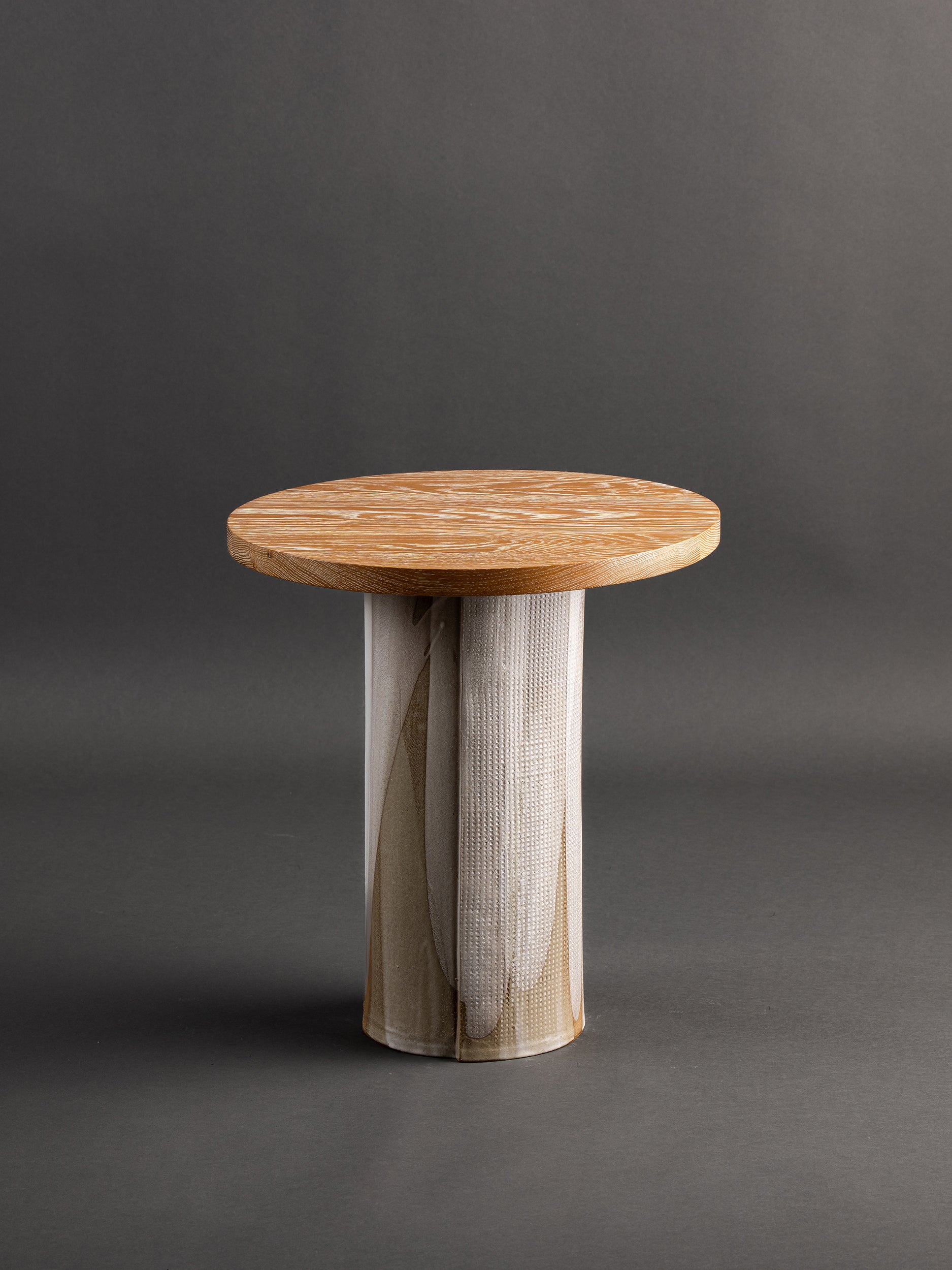 Our stoneware and oak Kent Side Table is handcrafted using slab-construction and cerusing techniques.