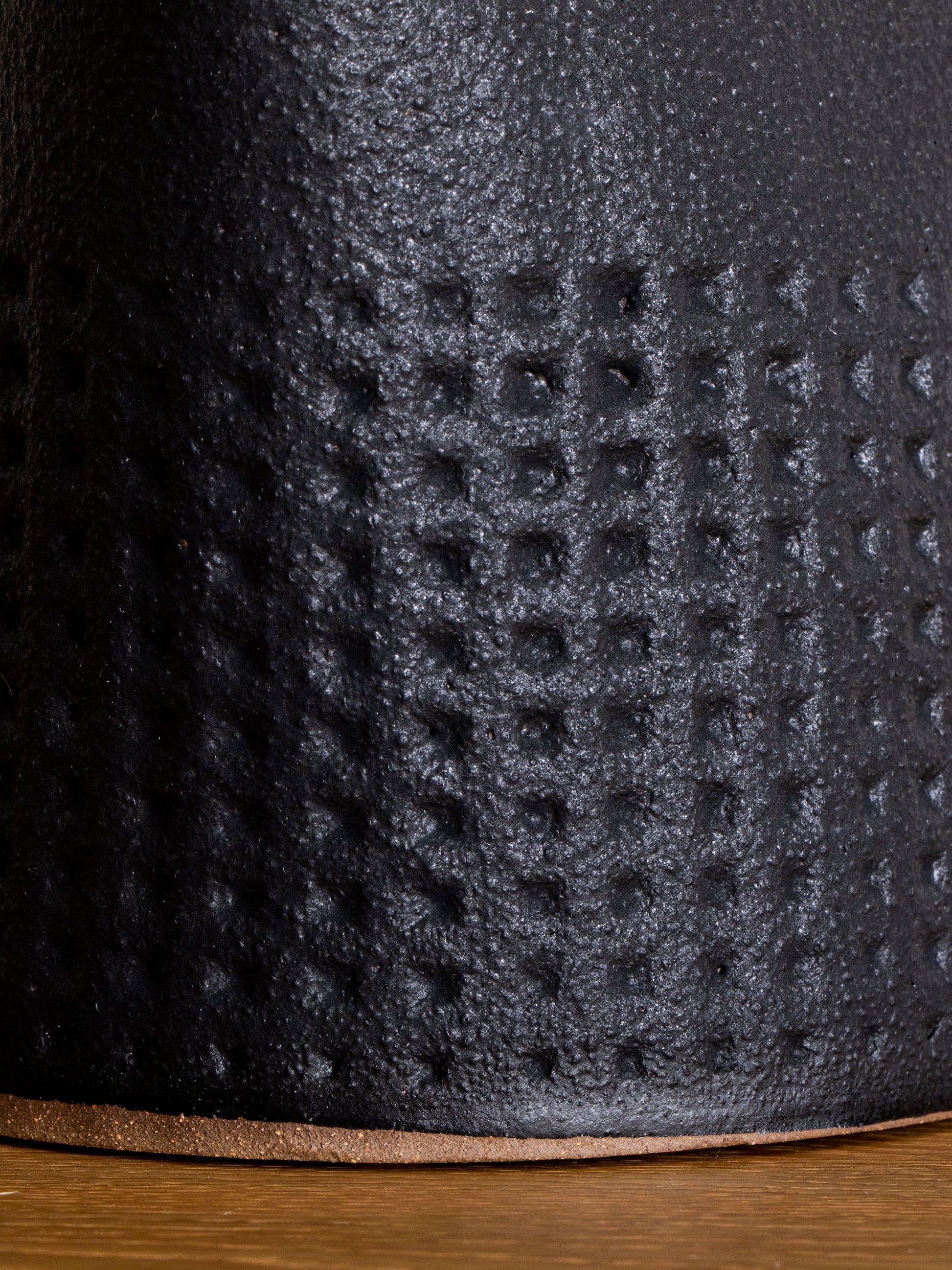 Our stoneware Leslie Table Lamp is handcrafted using slab-construction techniques. The lamp’s pattern is created by rolling the surface with textured rolling pins and rods.