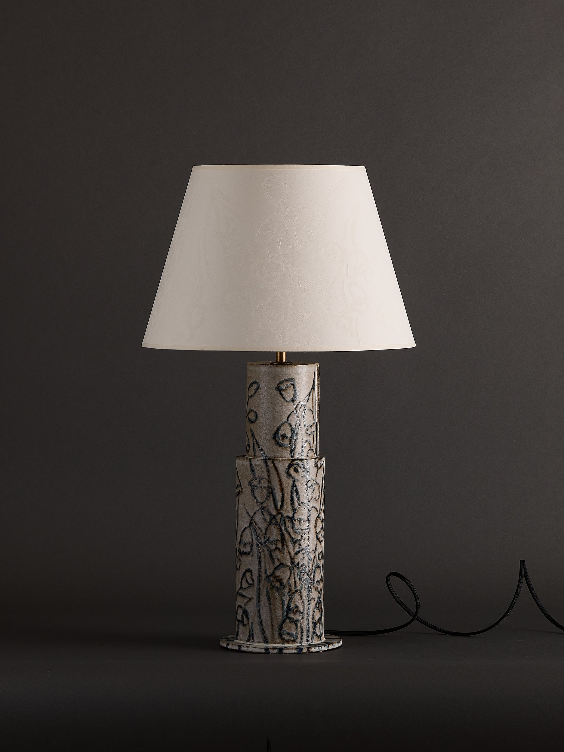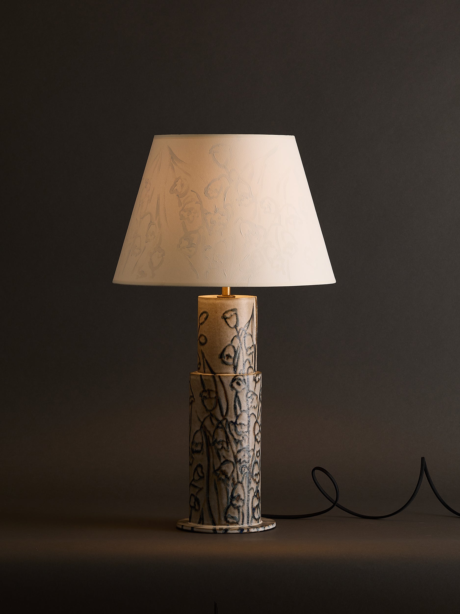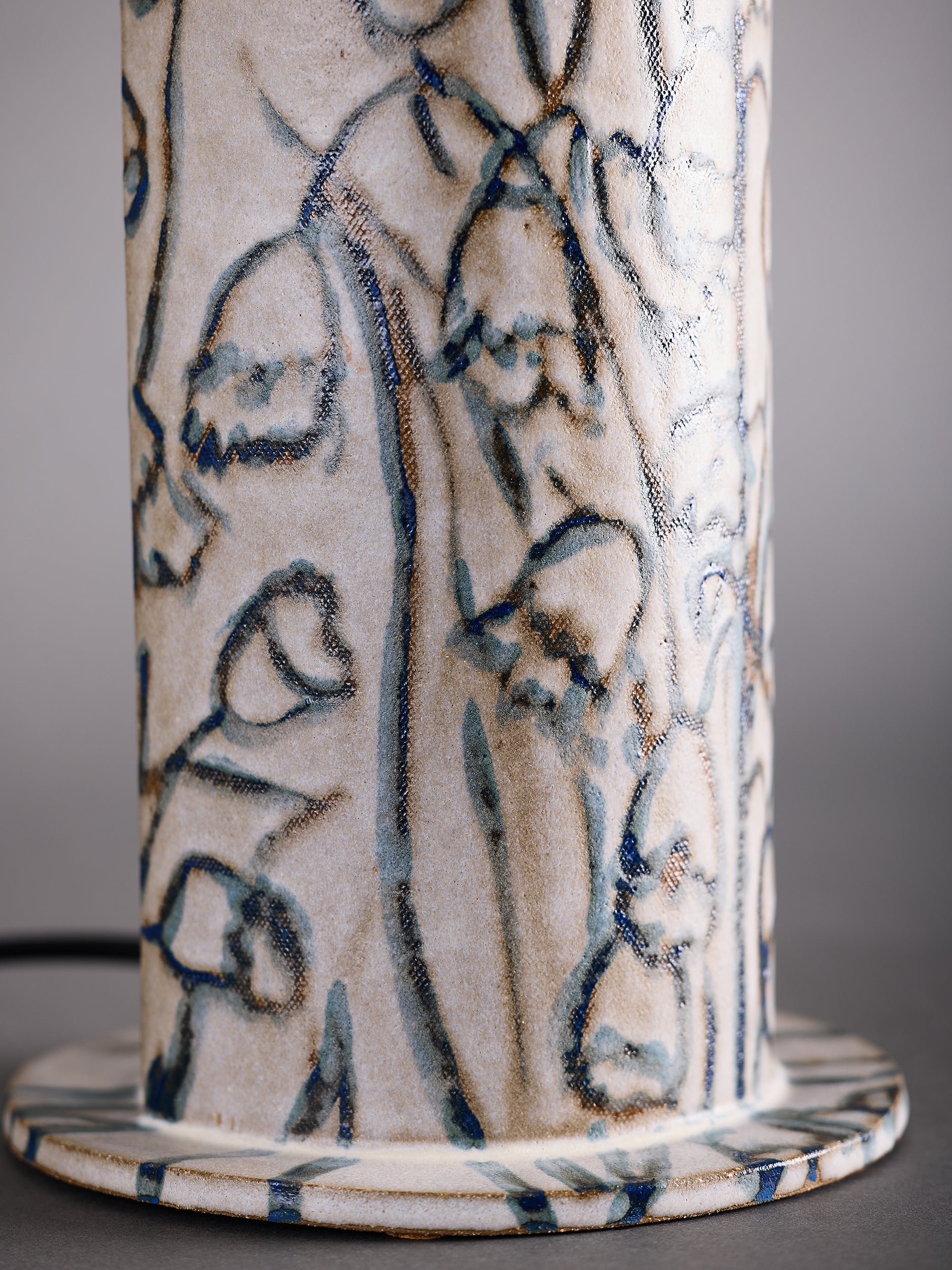 Our stoneware Lily of the Valley Lamp is handcrafted using slab-construction techniques.