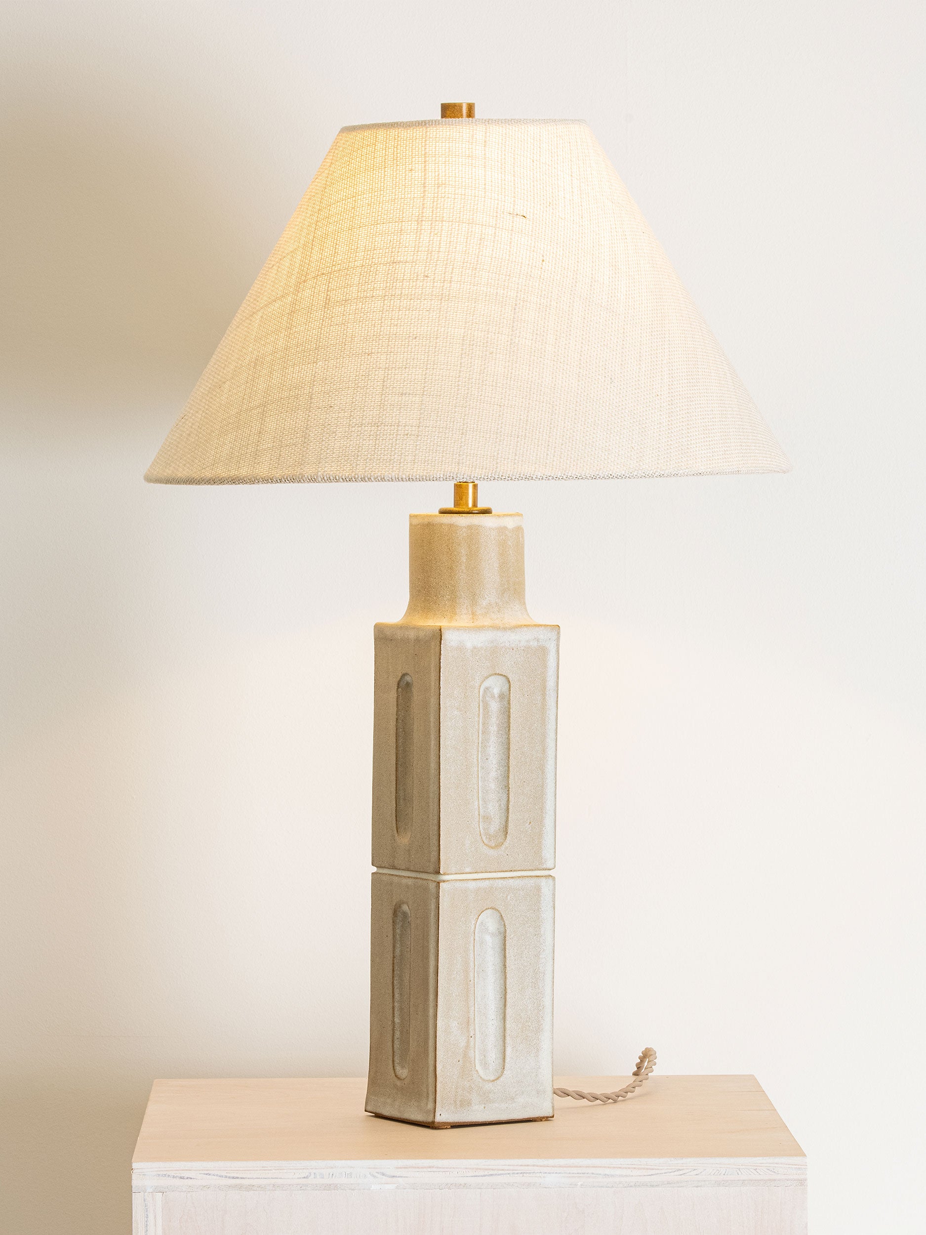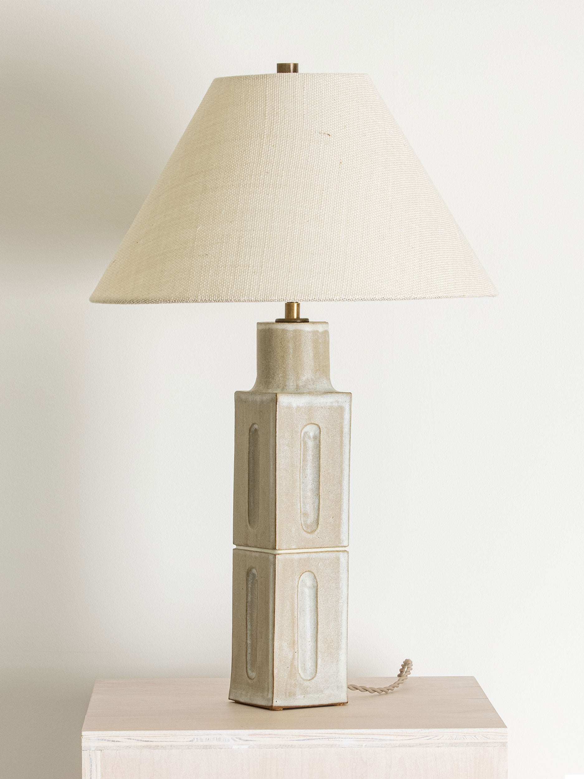 Our stoneware Stone Lamp is handcrafted using slab-construction techniques.