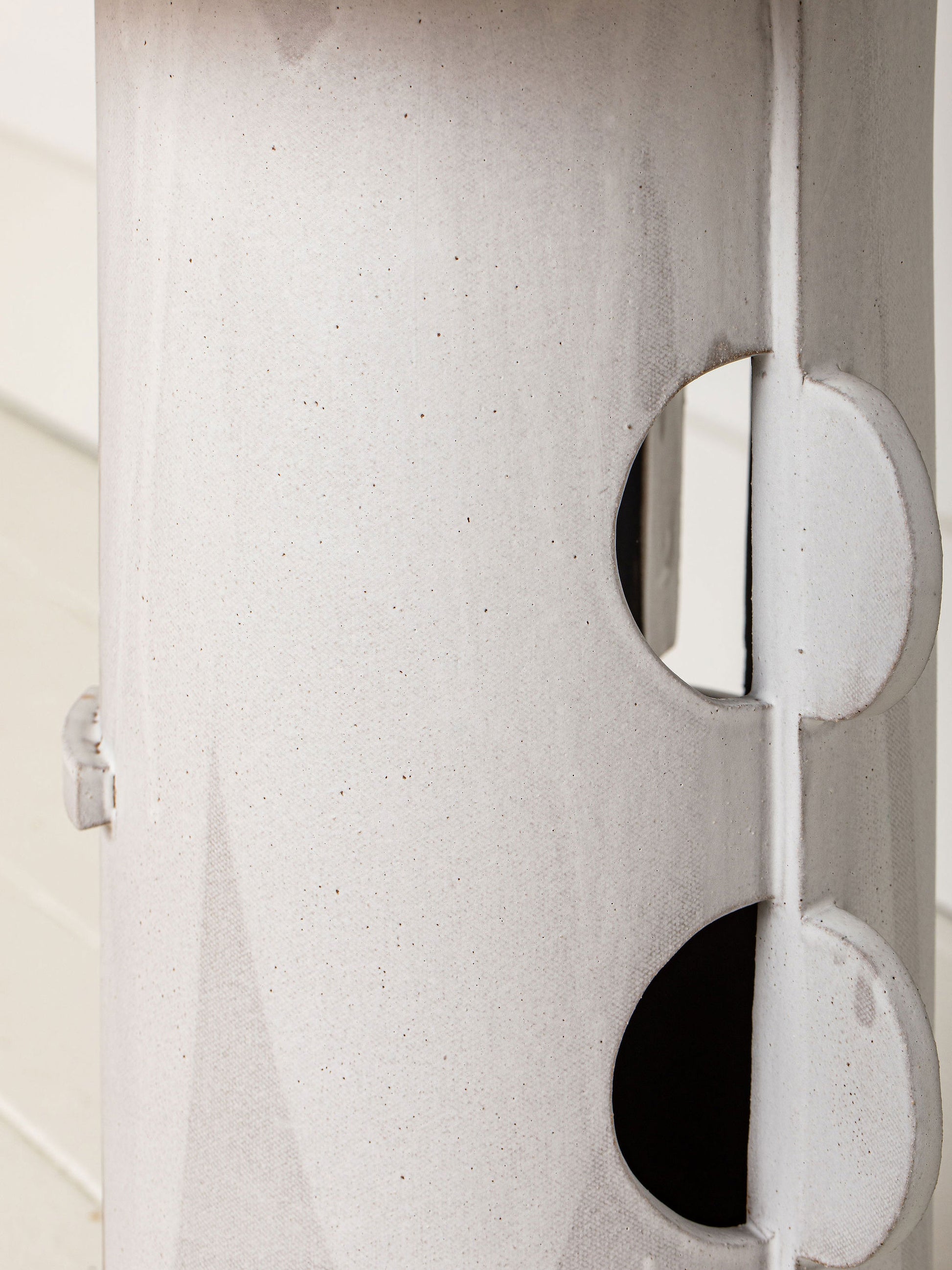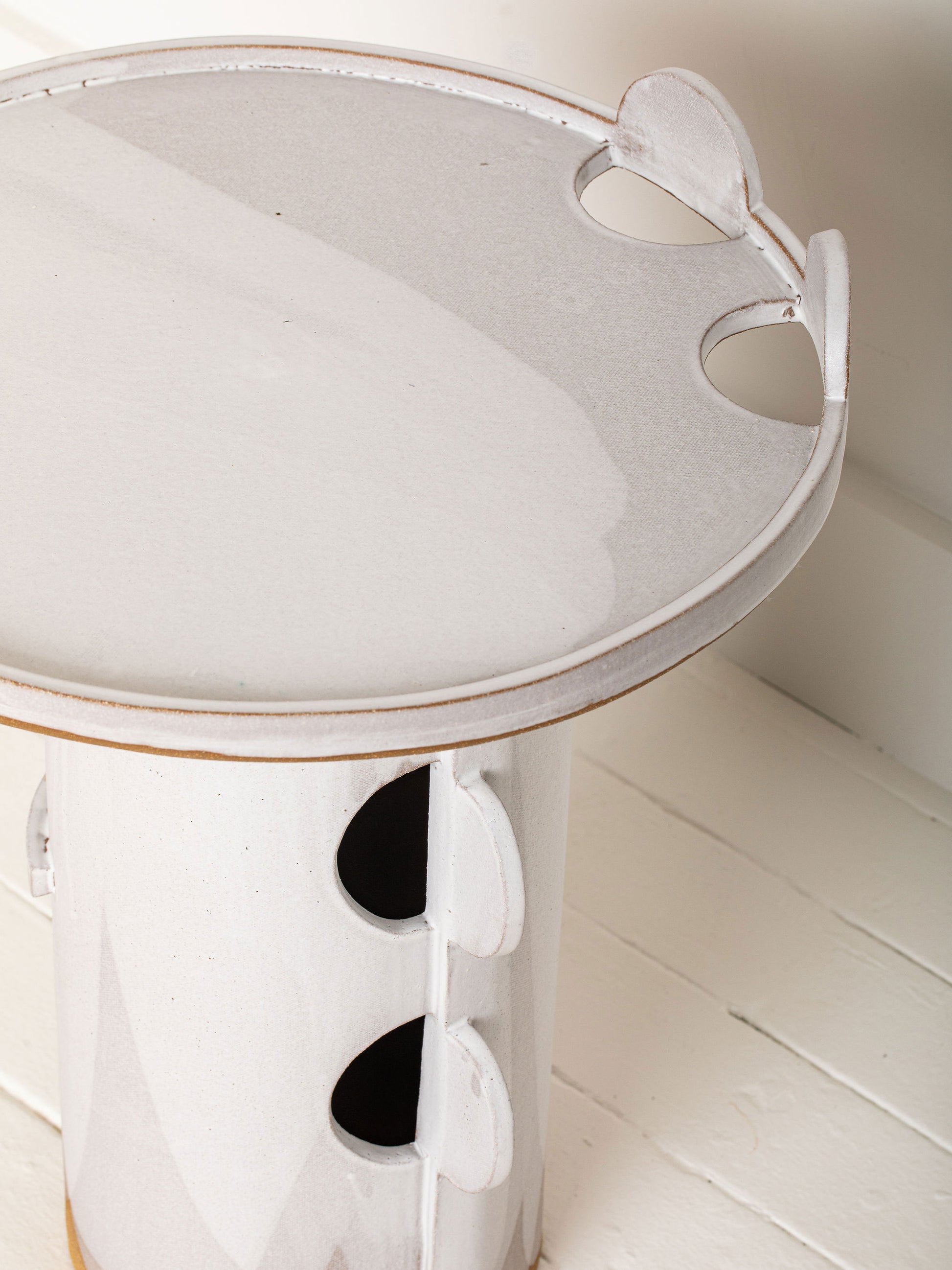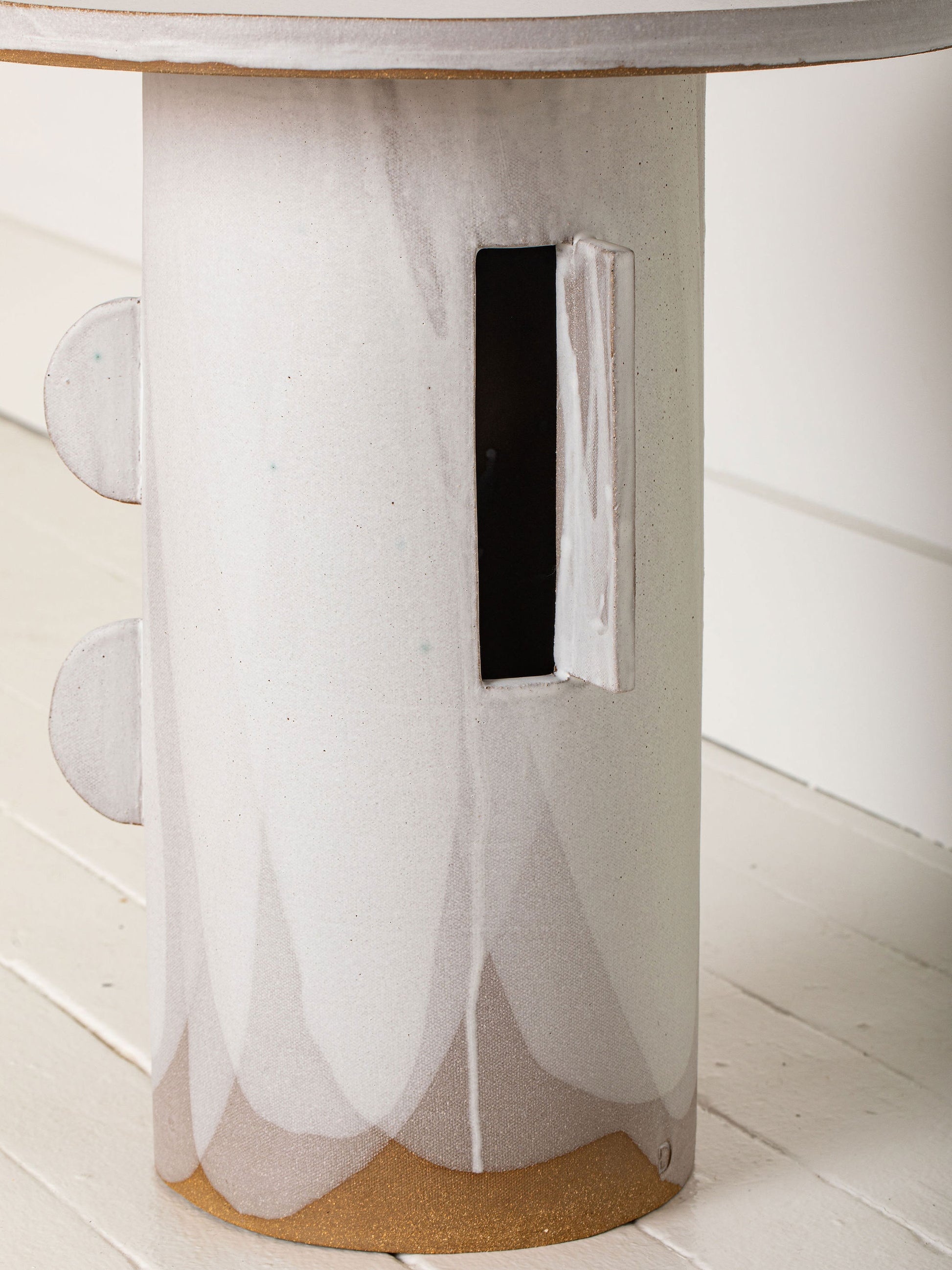 Our stoneware Nevelson Side Table is handcrafted using slab-construction techniques.