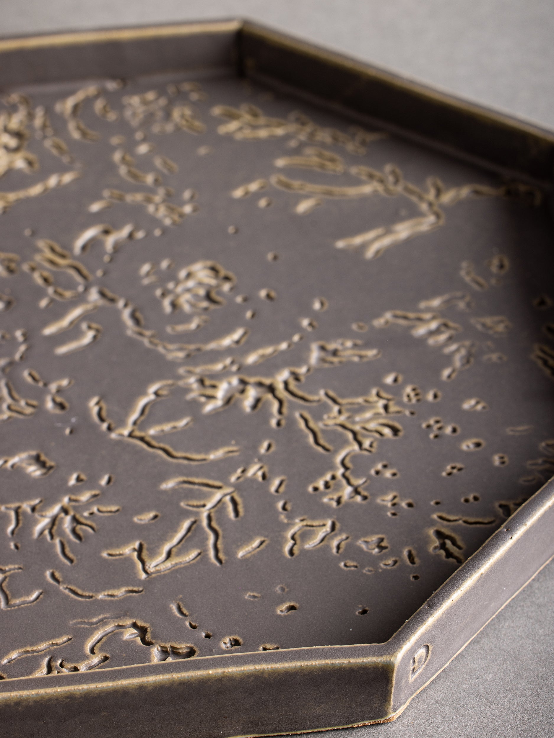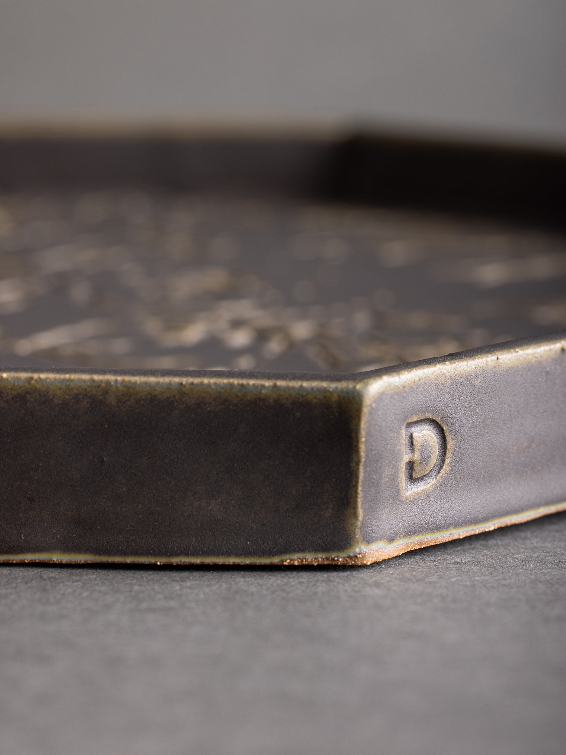 Our stoneware Octagon Serving Tray is handcrafted using slab-construction techniques.