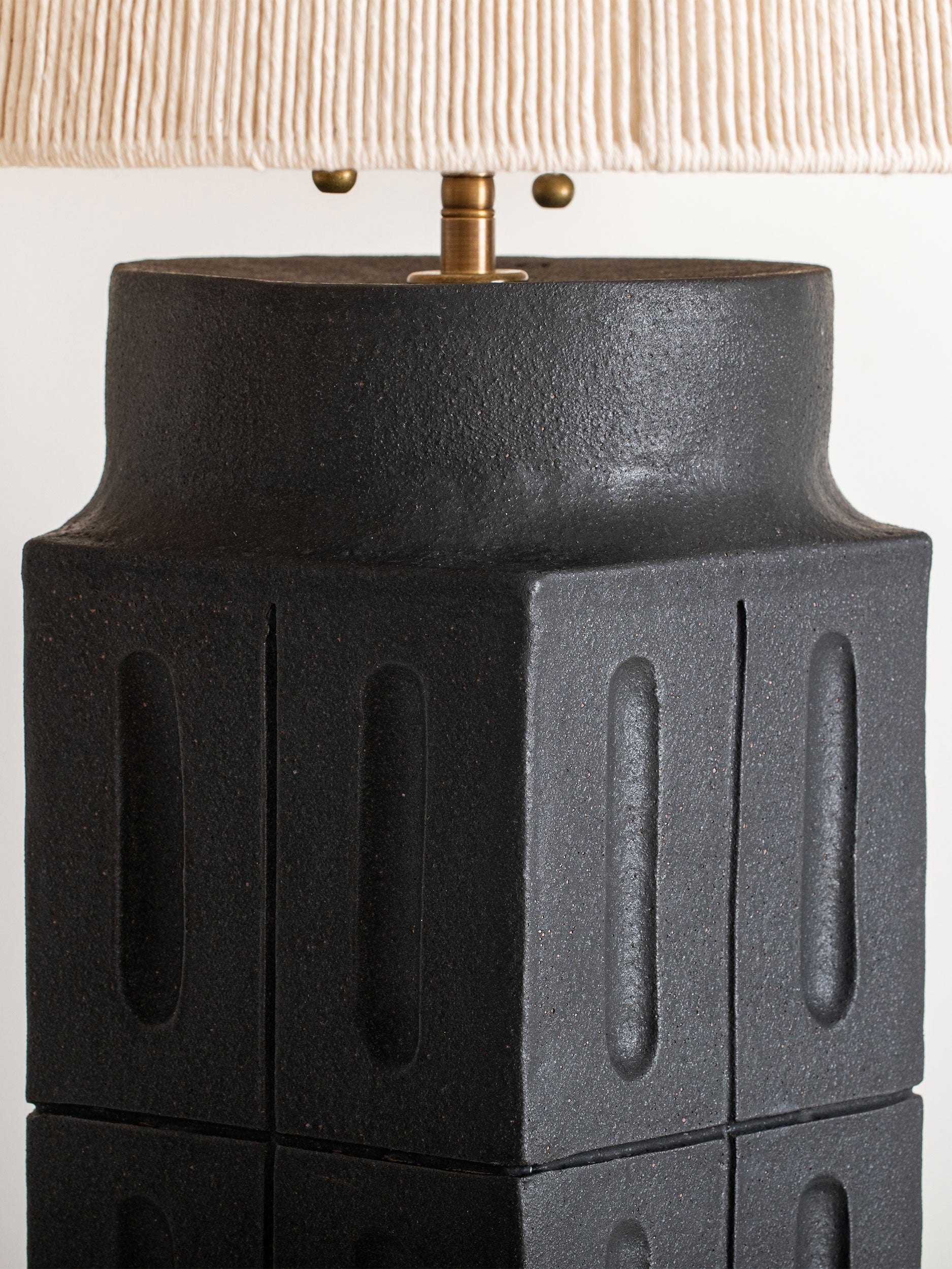 Our stoneware Pentagonal Stone Lamp is handcrafted using slab-construction techniques.