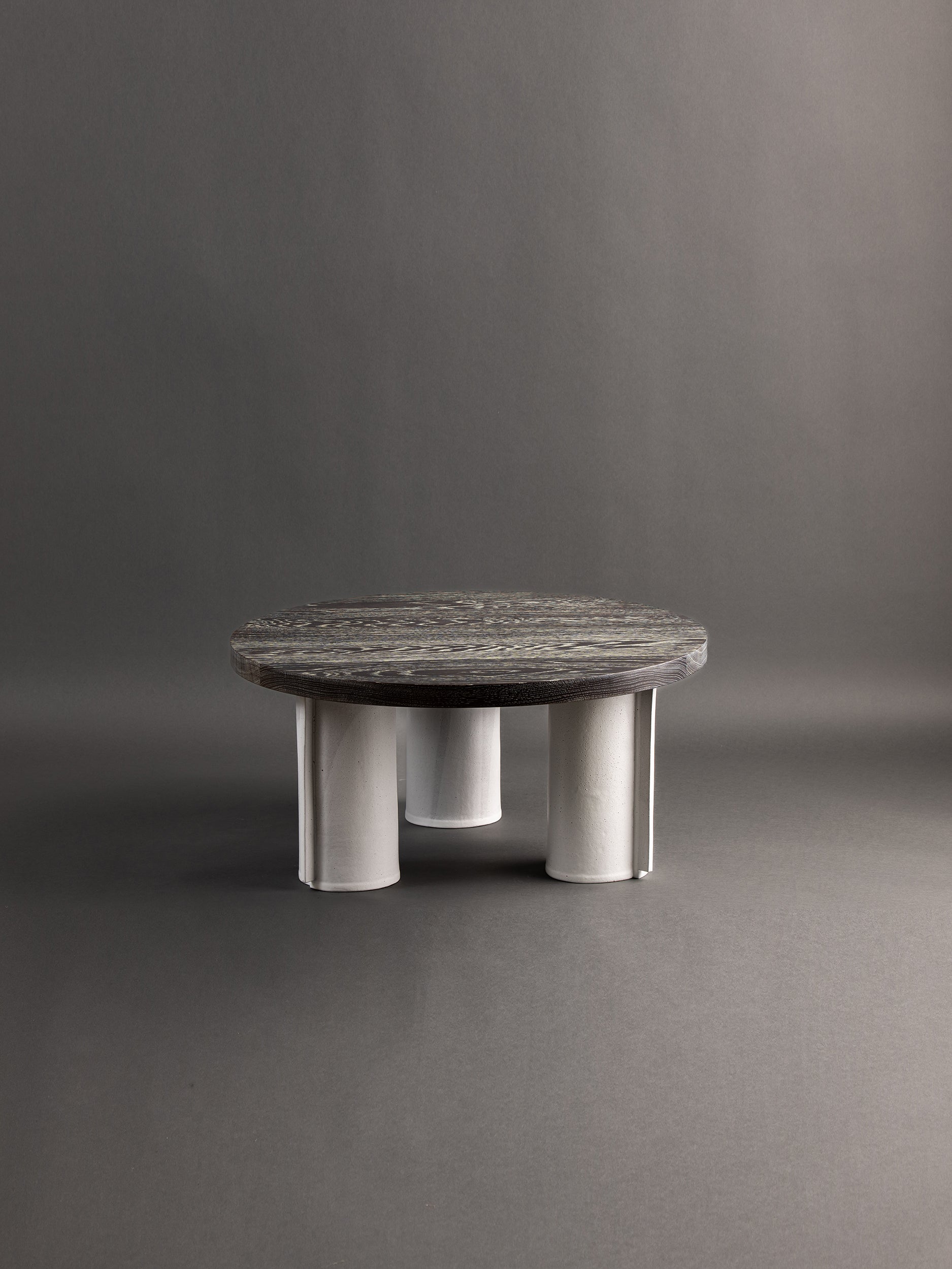 Our stoneware and oak Piling Coffee Table is handcrafted using slab-construction and cerusing techniques.