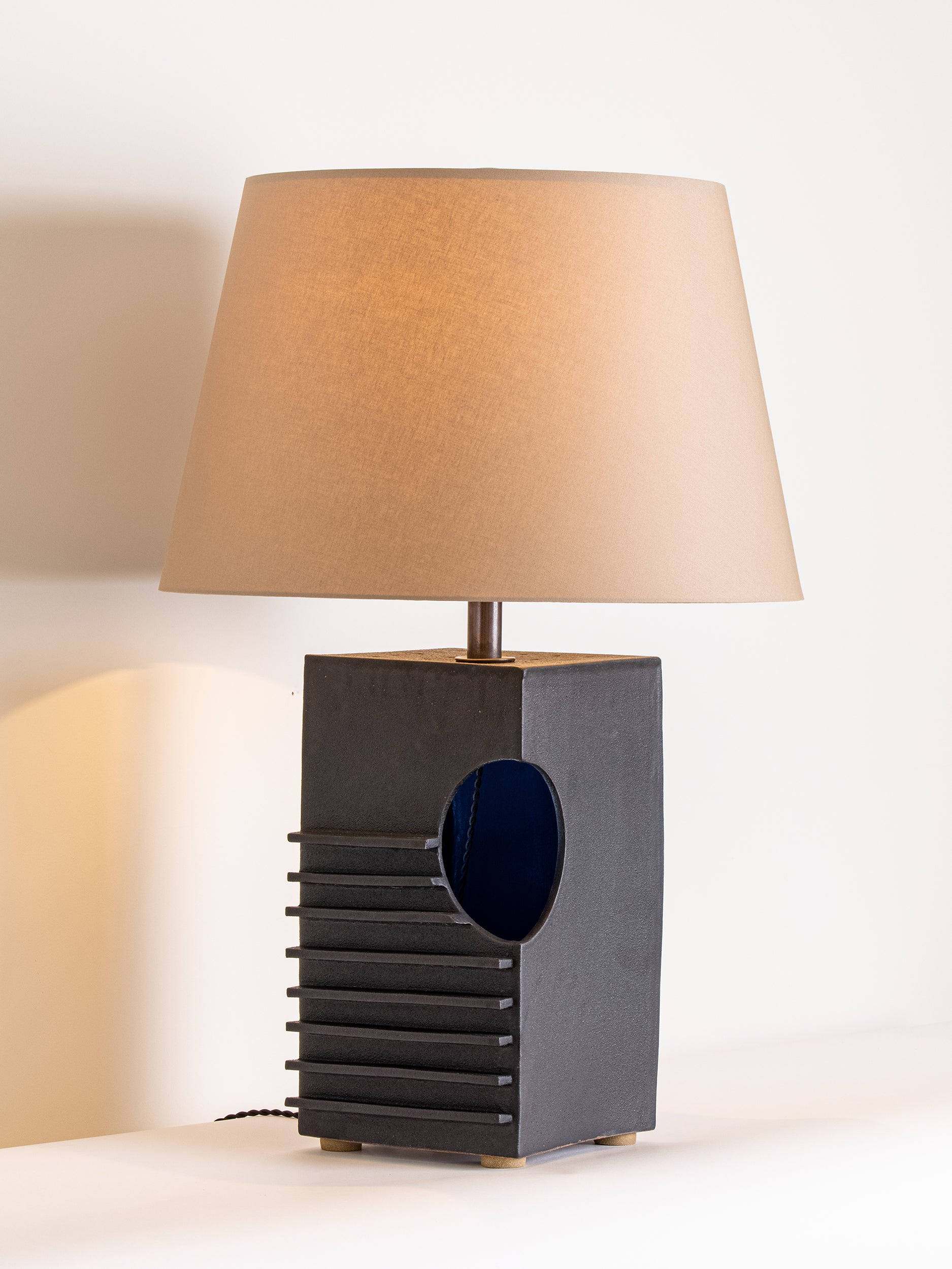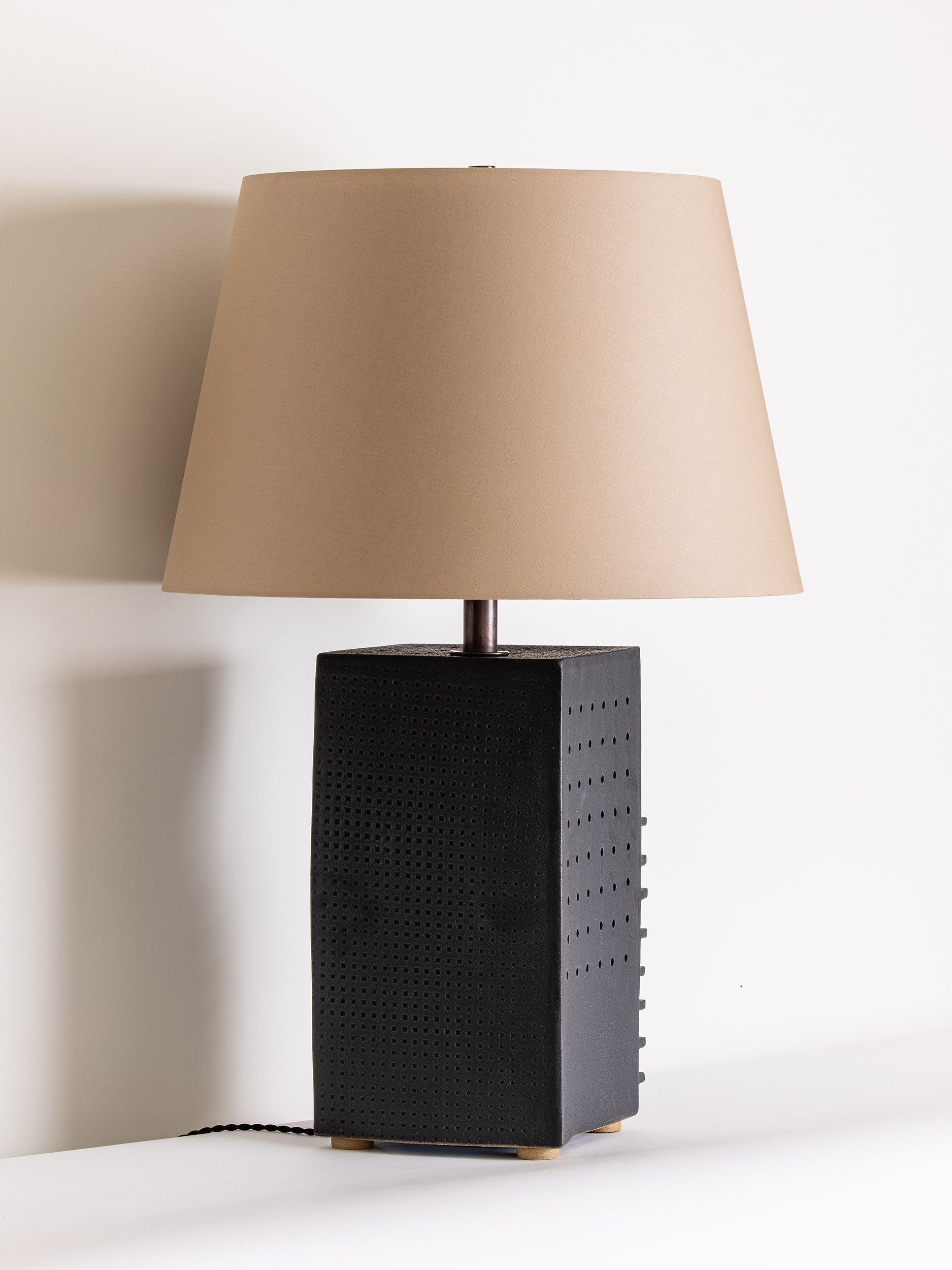 Our stoneware Quadrangle Lamp is handcrafted using slab-construction techniques.
