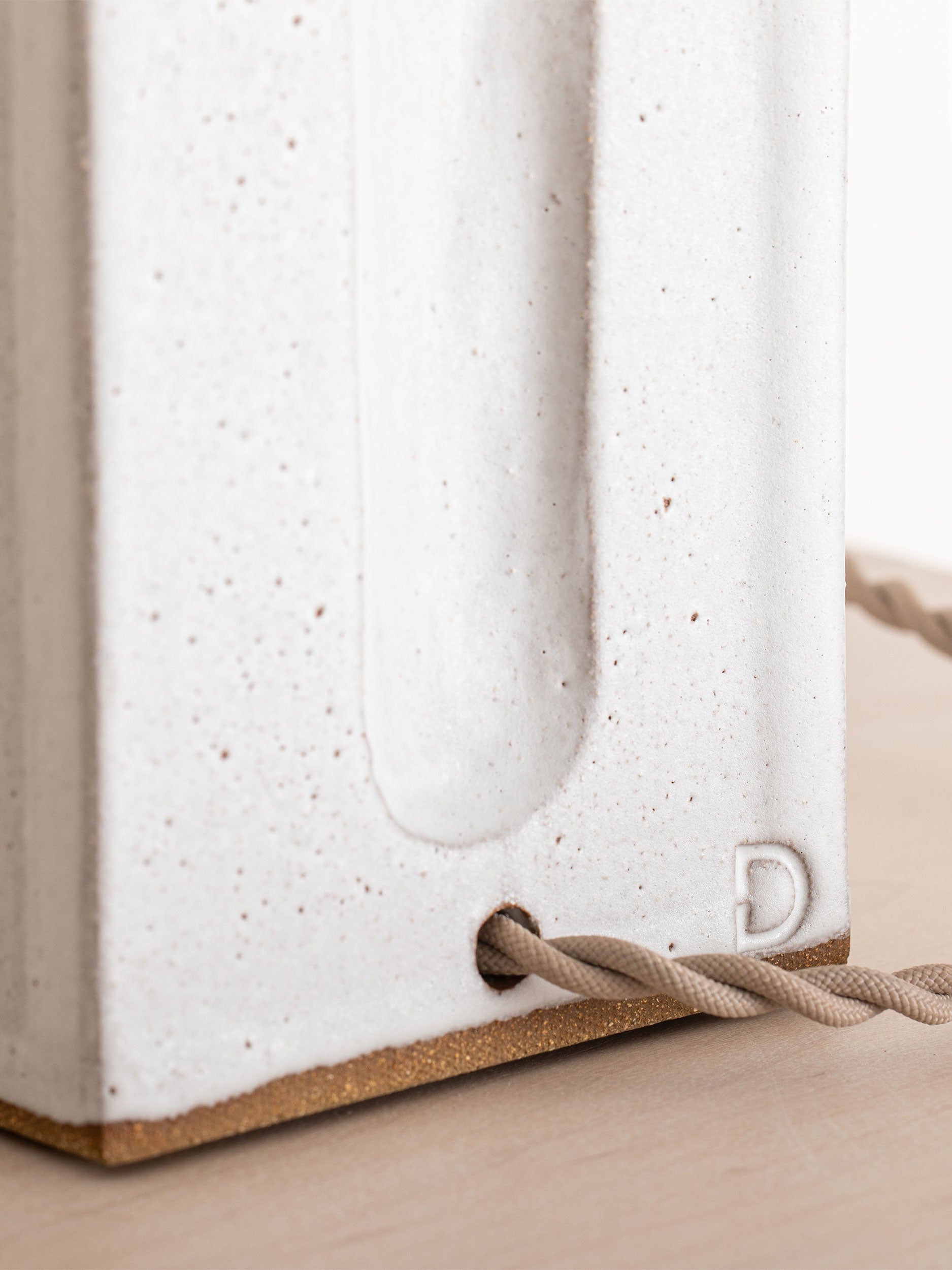 Our stoneware Stone Lamp is handcrafted using slab-construction techniques.