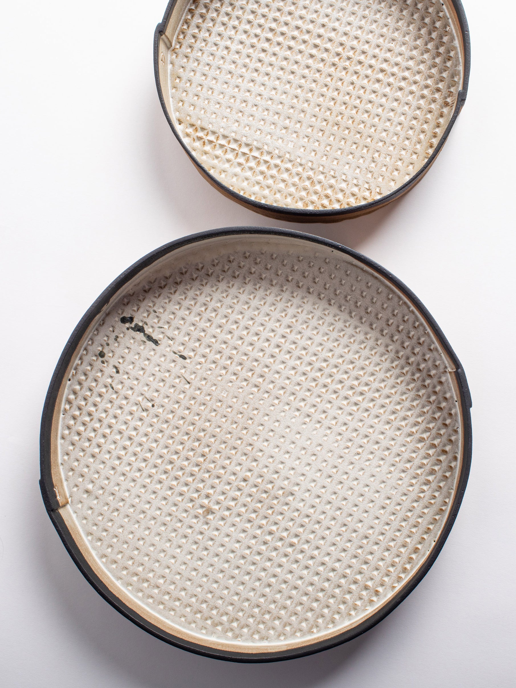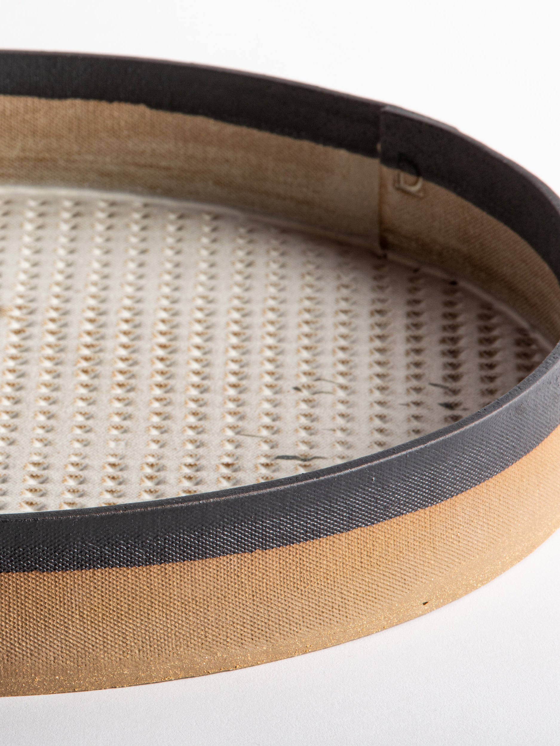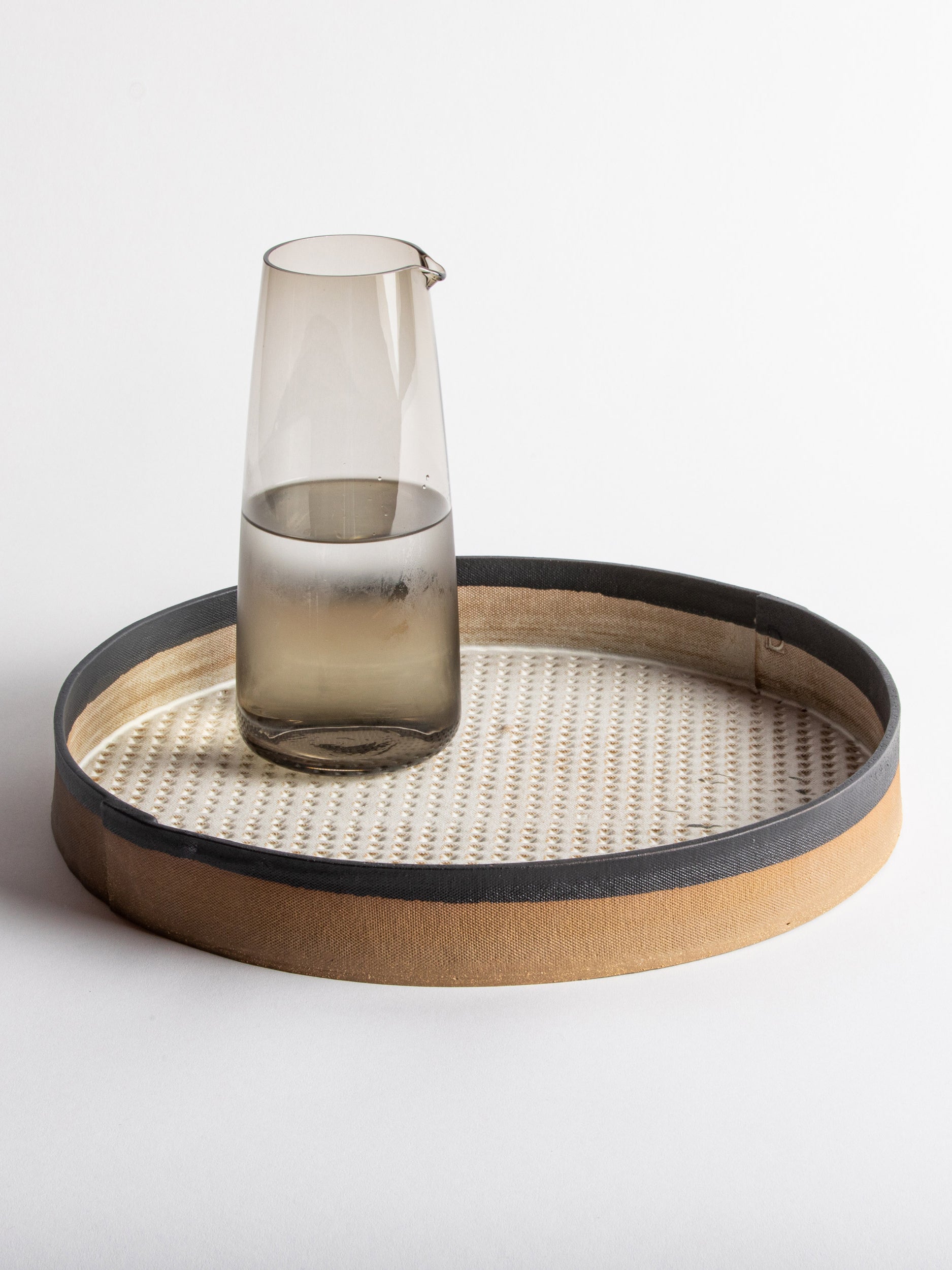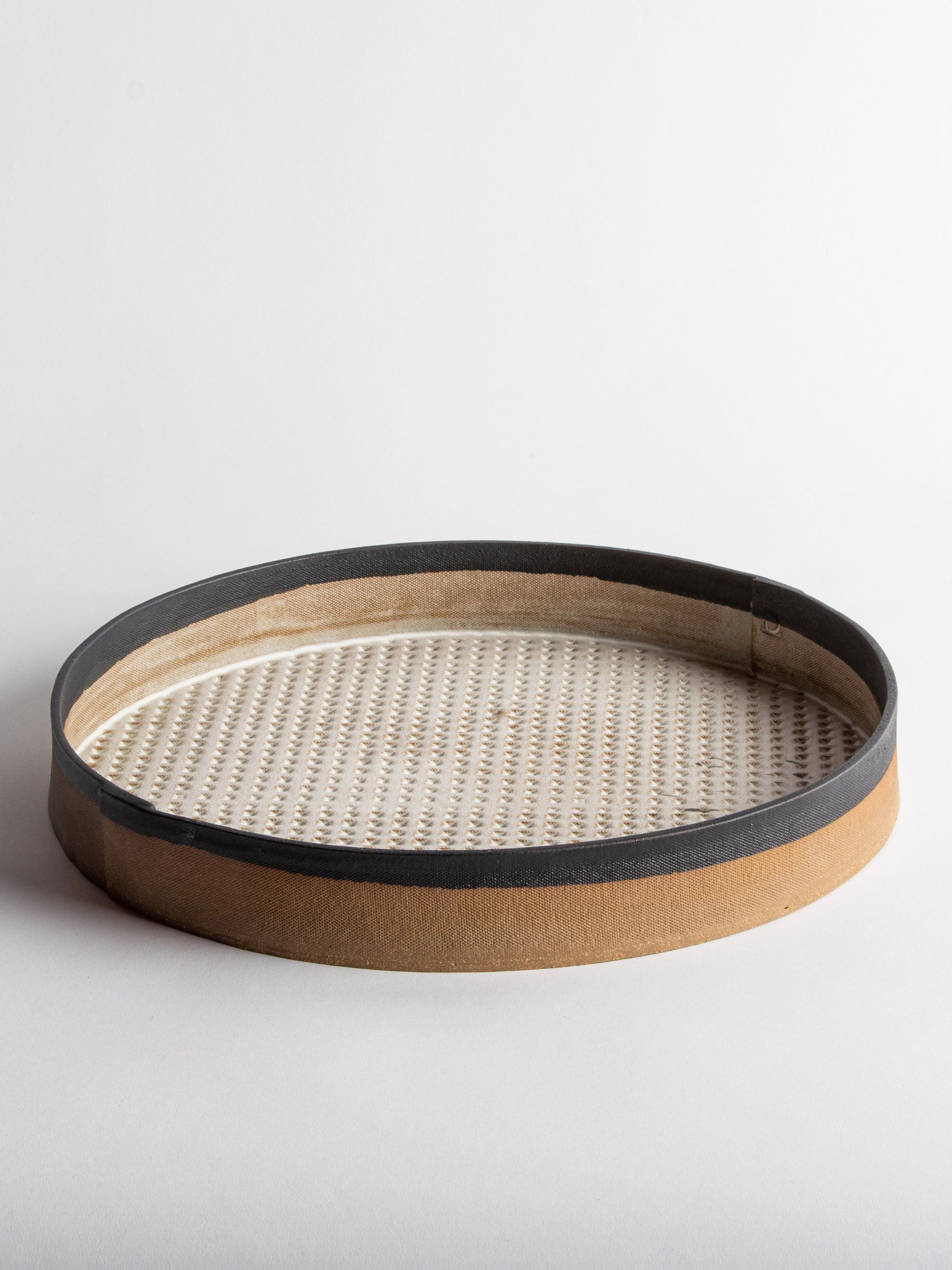 Our stoneware Slab Tray is handcrafted using slab-construction techniques. The tray’s pattern is created by rolling the surface with textured rolling pins and rods.