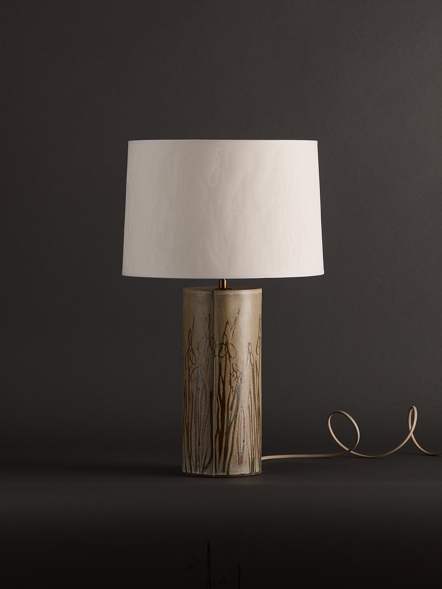 Our stoneware Snow Drop Lamp is handcrafted using slab-construction techniques.