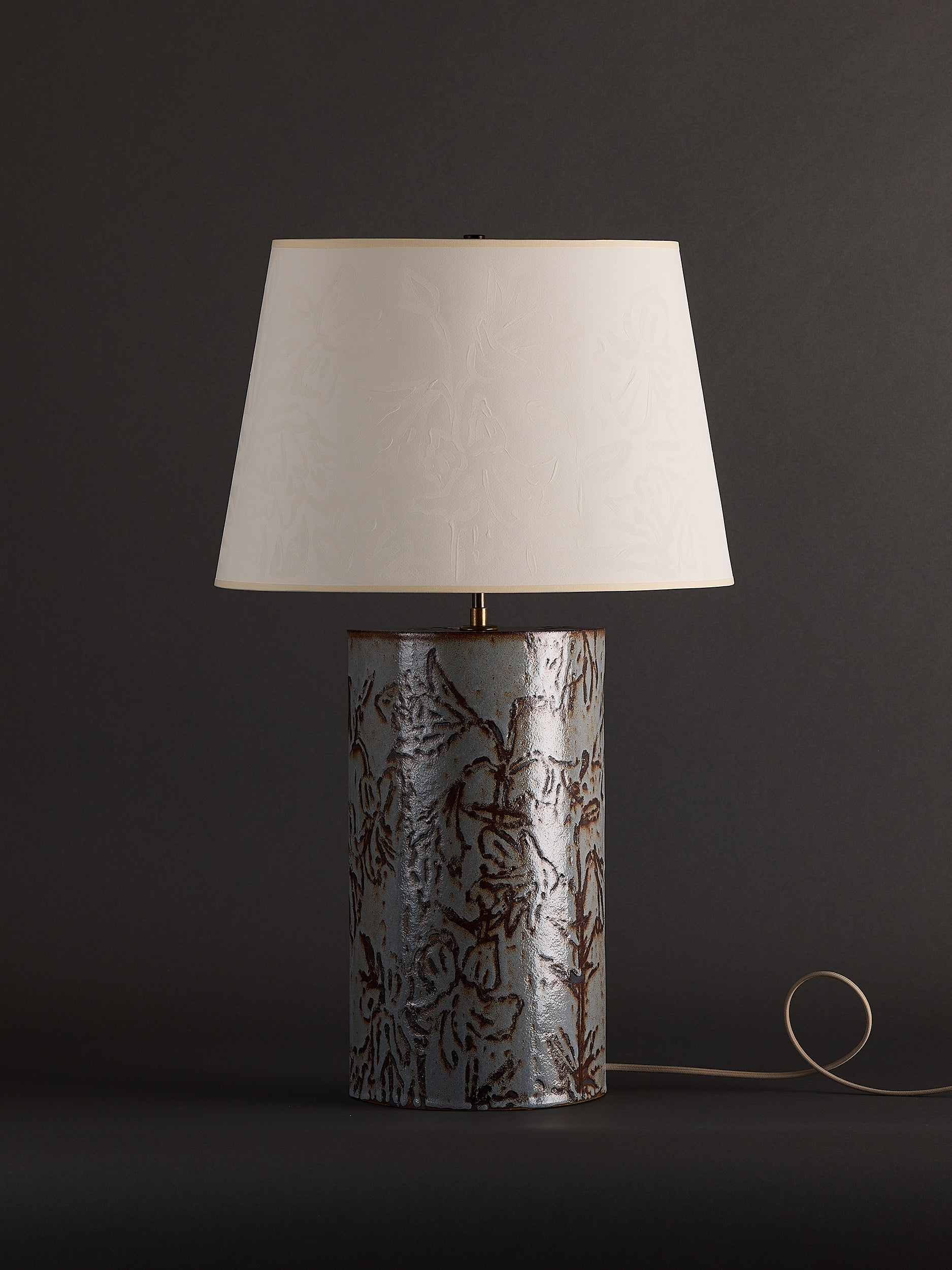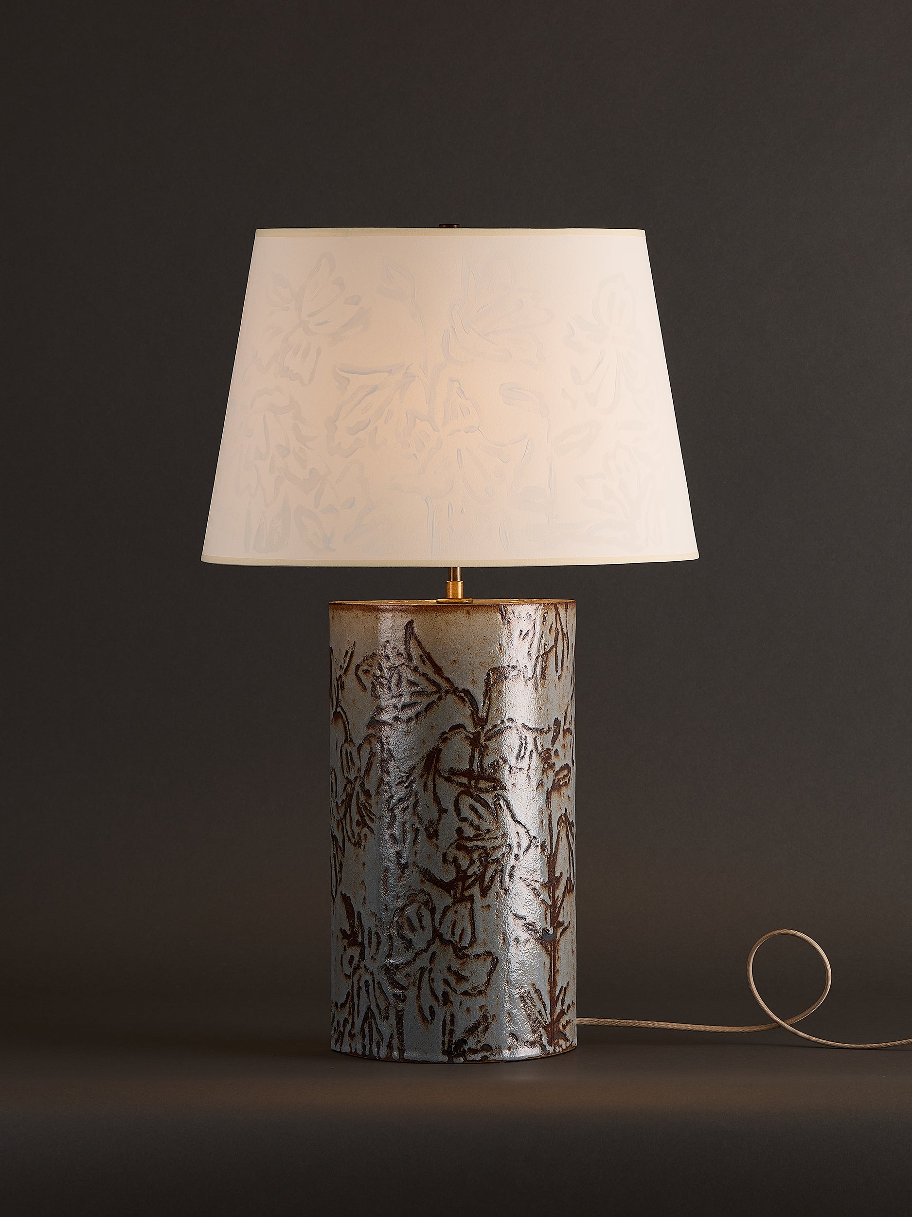 Our stoneware Tiger Lily Lamp is handcrafted using slab-construction techniques.