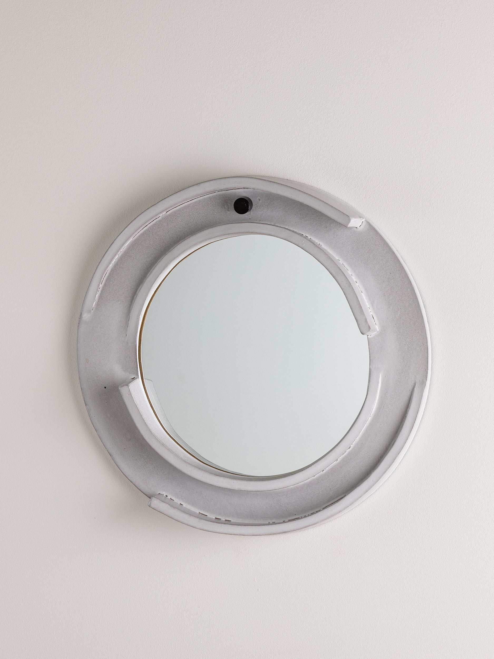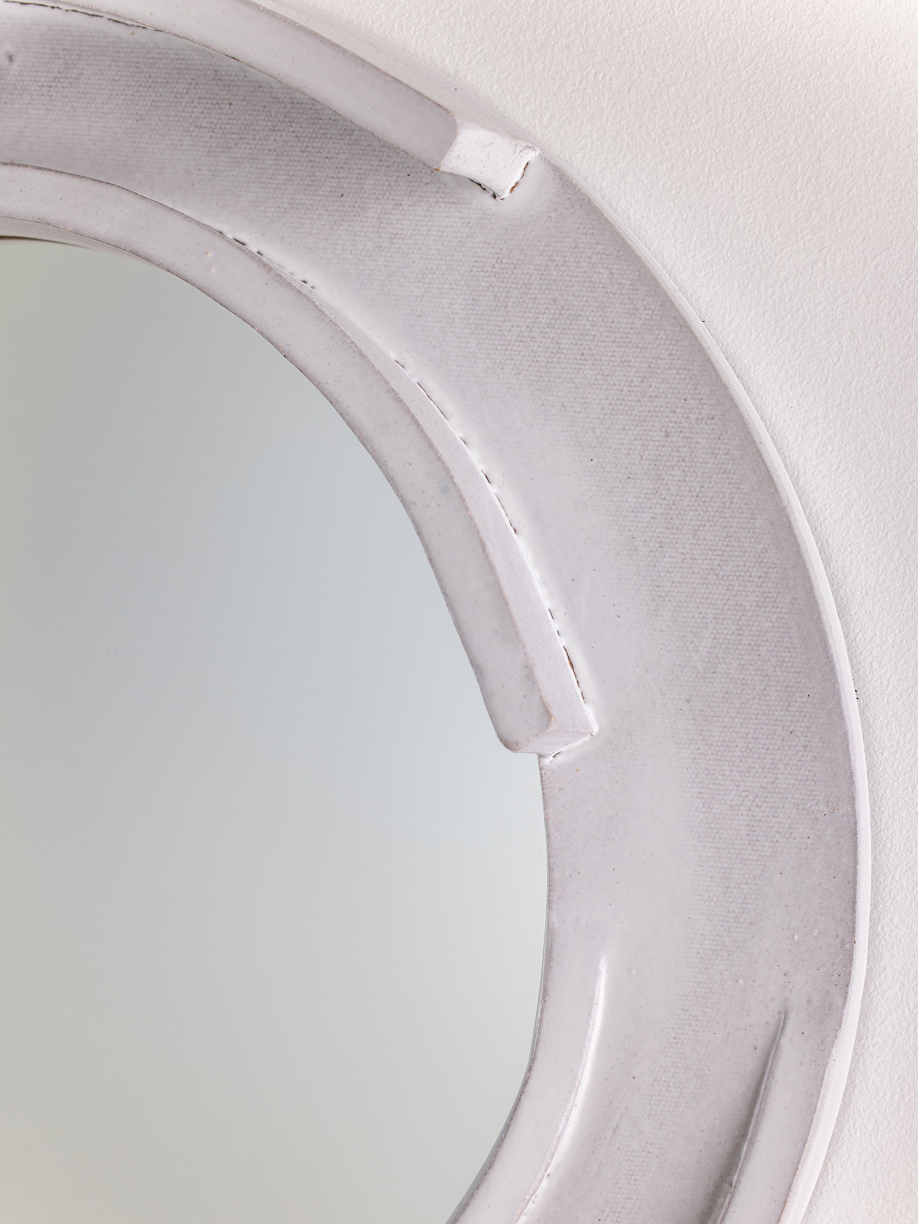 Our stoneware Torin Mirror, Round is handcrafted using slab-construction techniques.