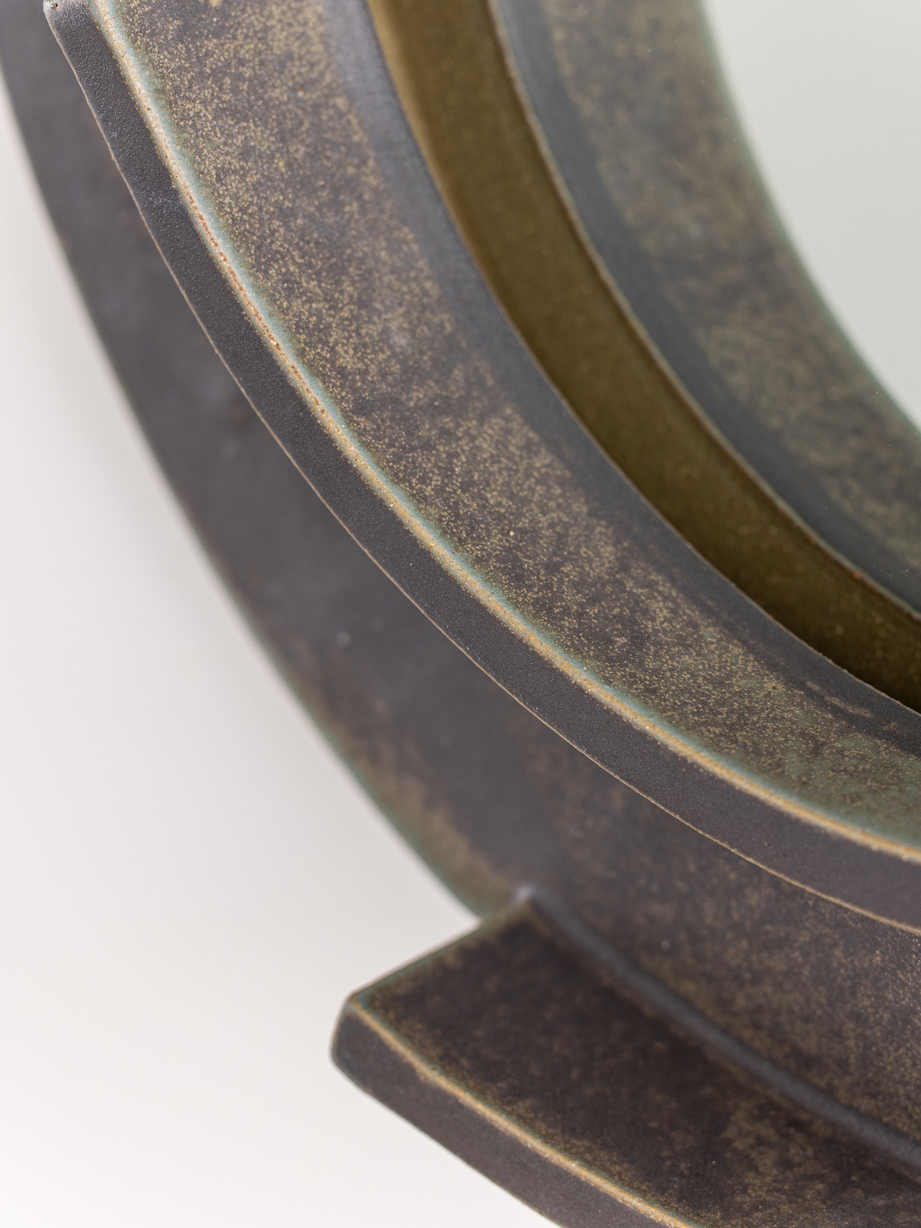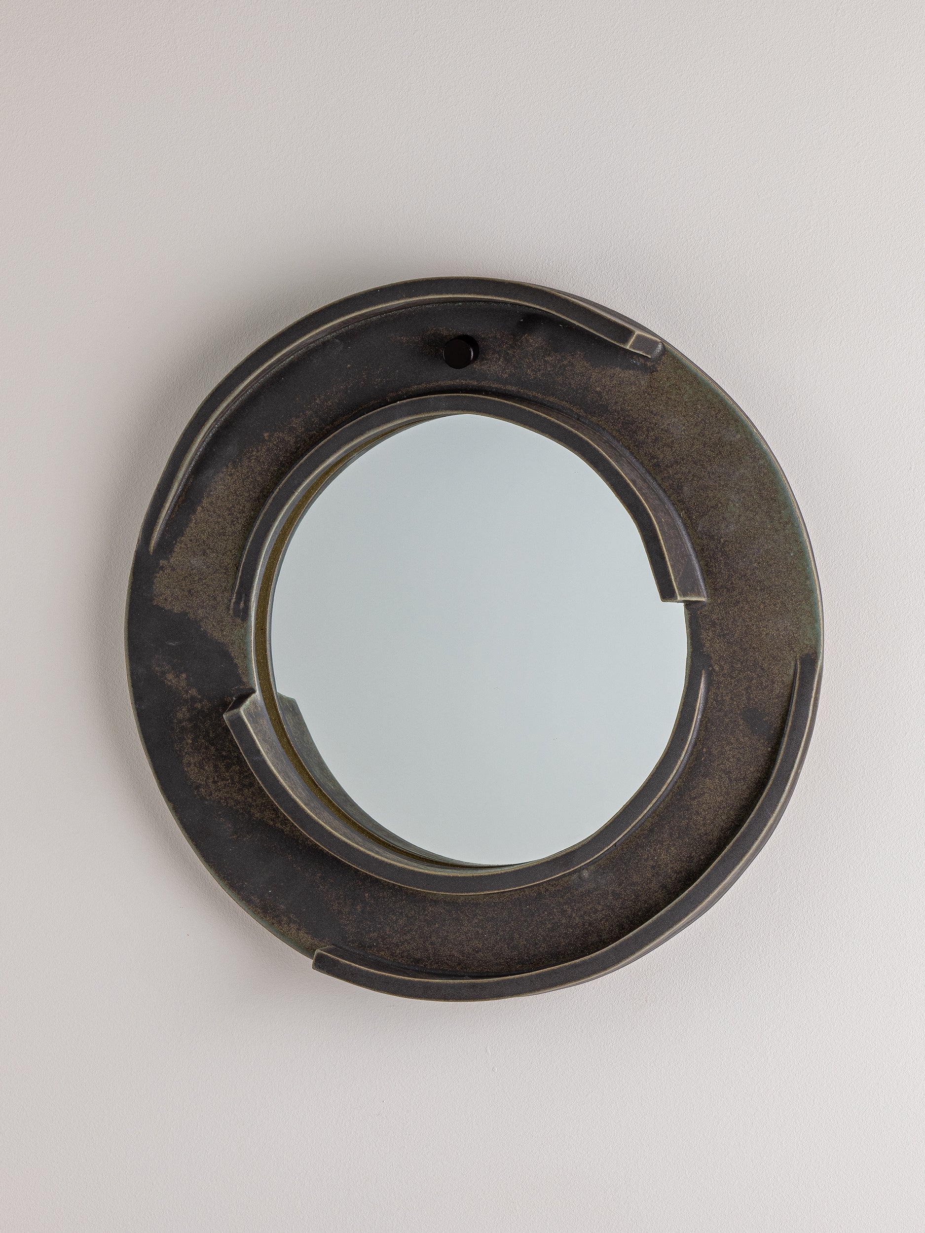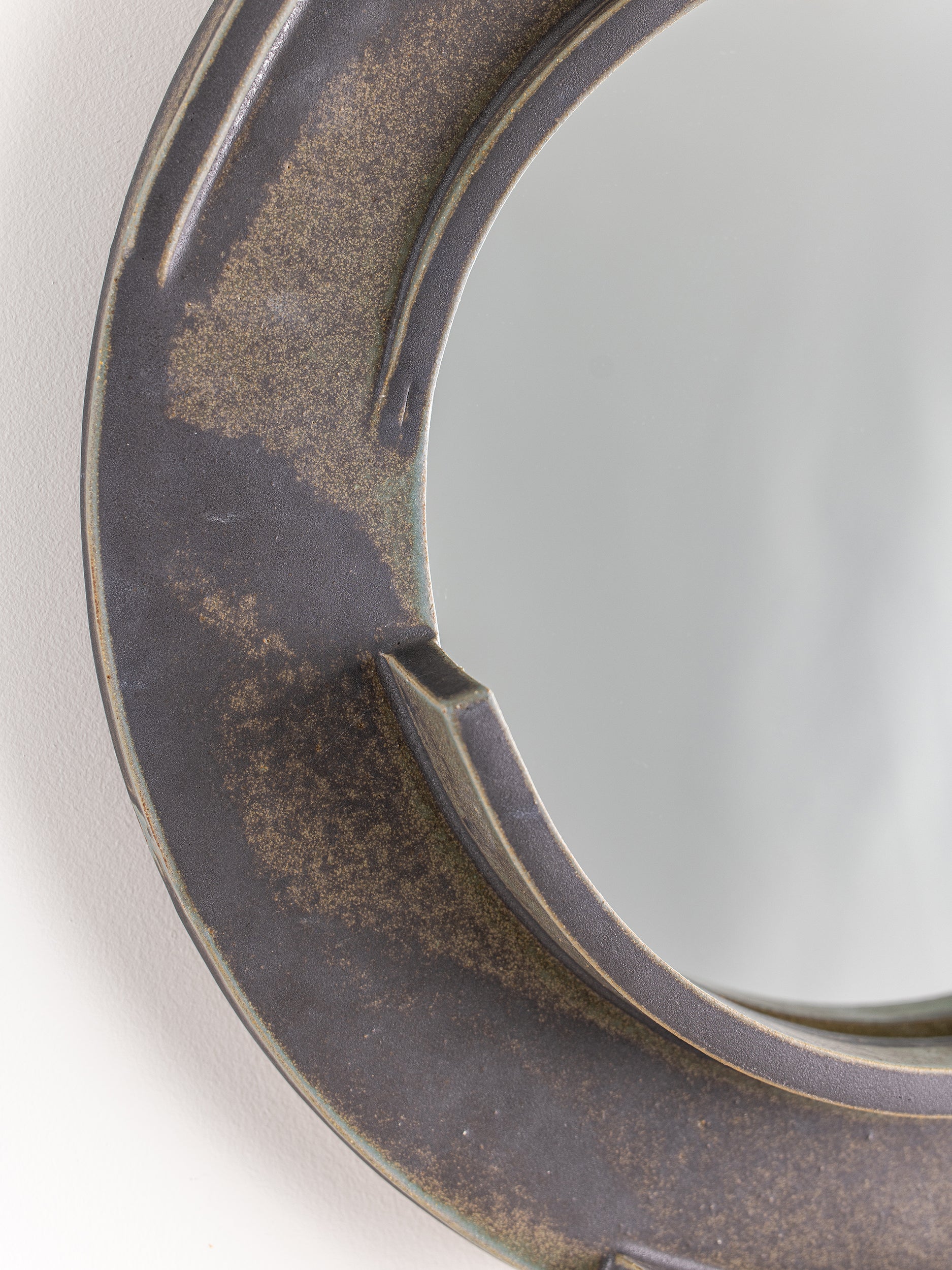Our stoneware Torin Mirror, Round is handcrafted using slab-construction techniques.