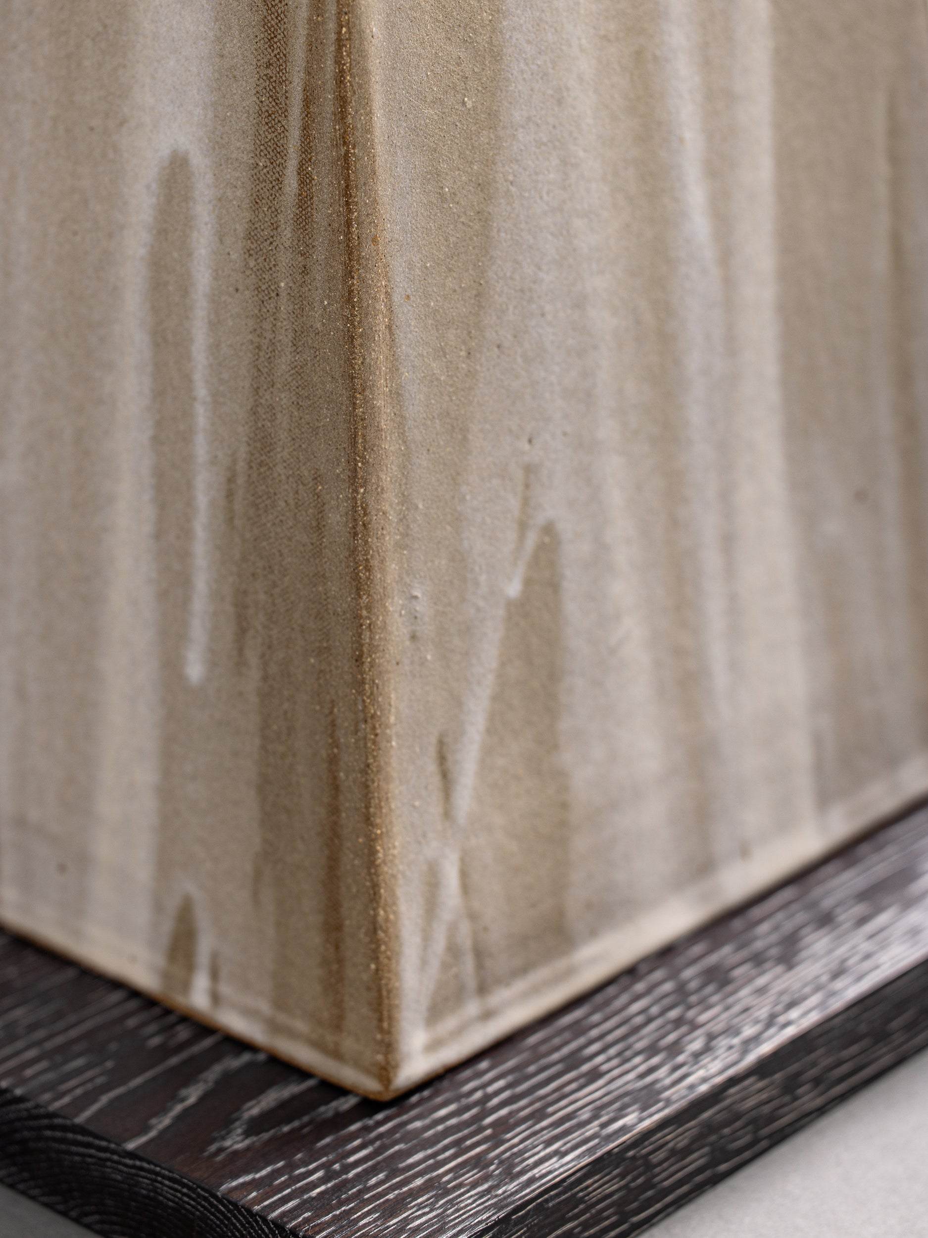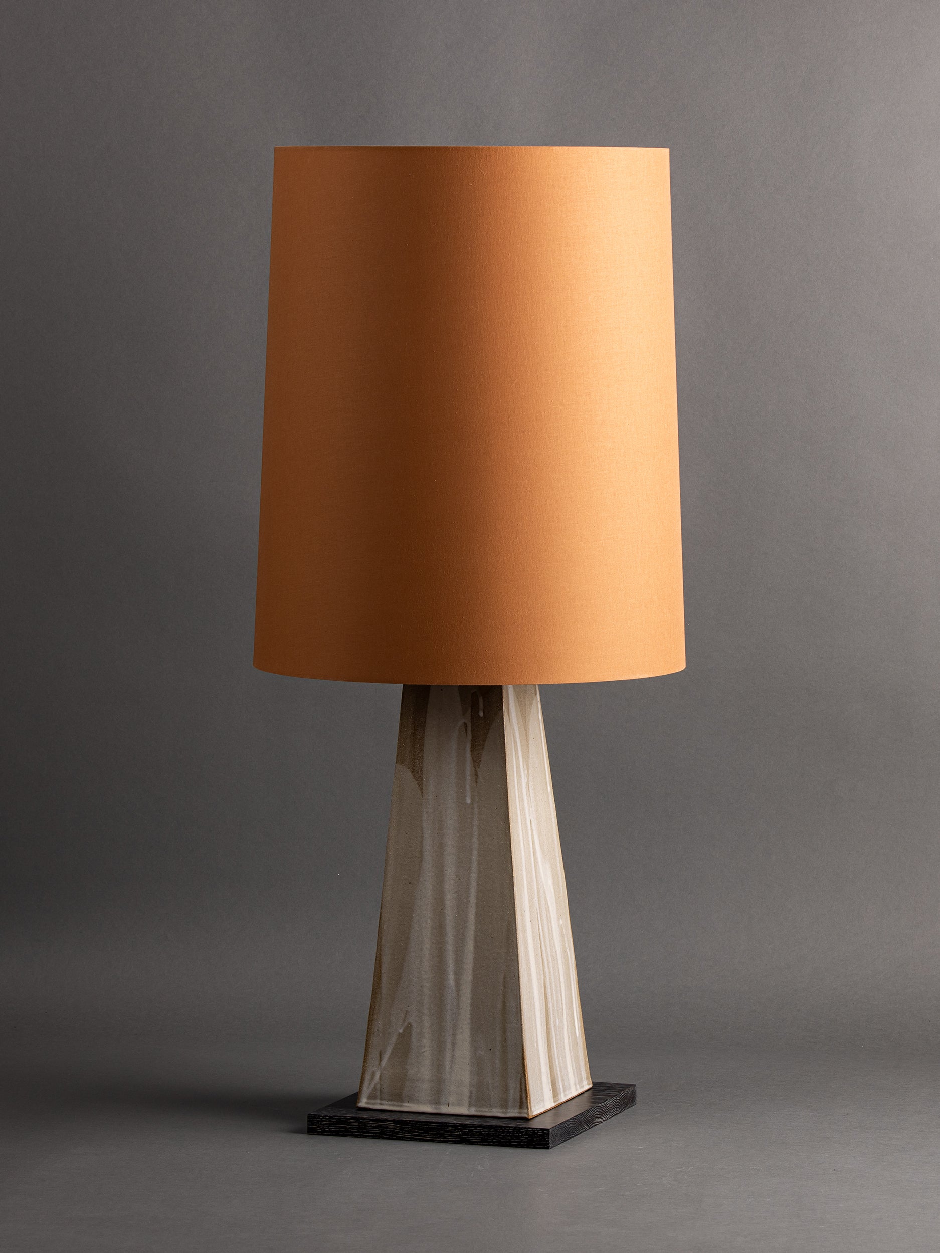 Our stoneware and oak Tower Floor Lamp is handcrafted using slab-construction and cerusing techniques.