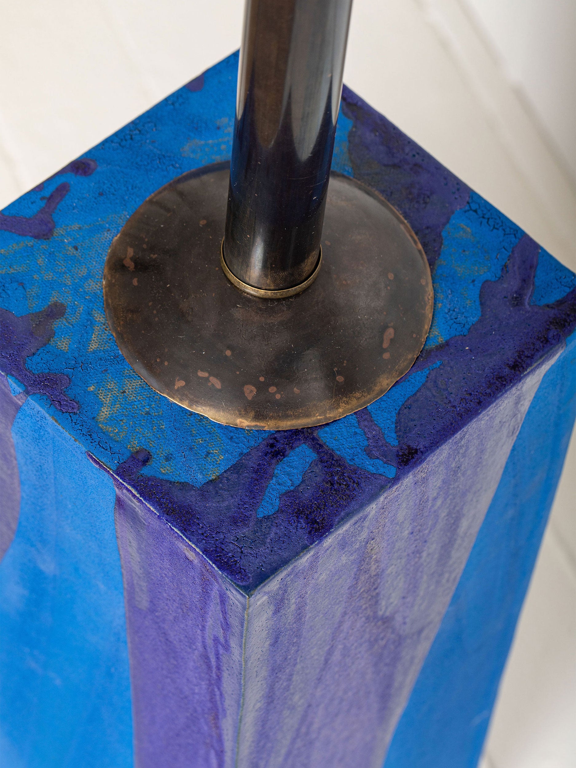 Our stoneware Ultramarine Floor Lamp is handcrafted using slab-construction techniques.
